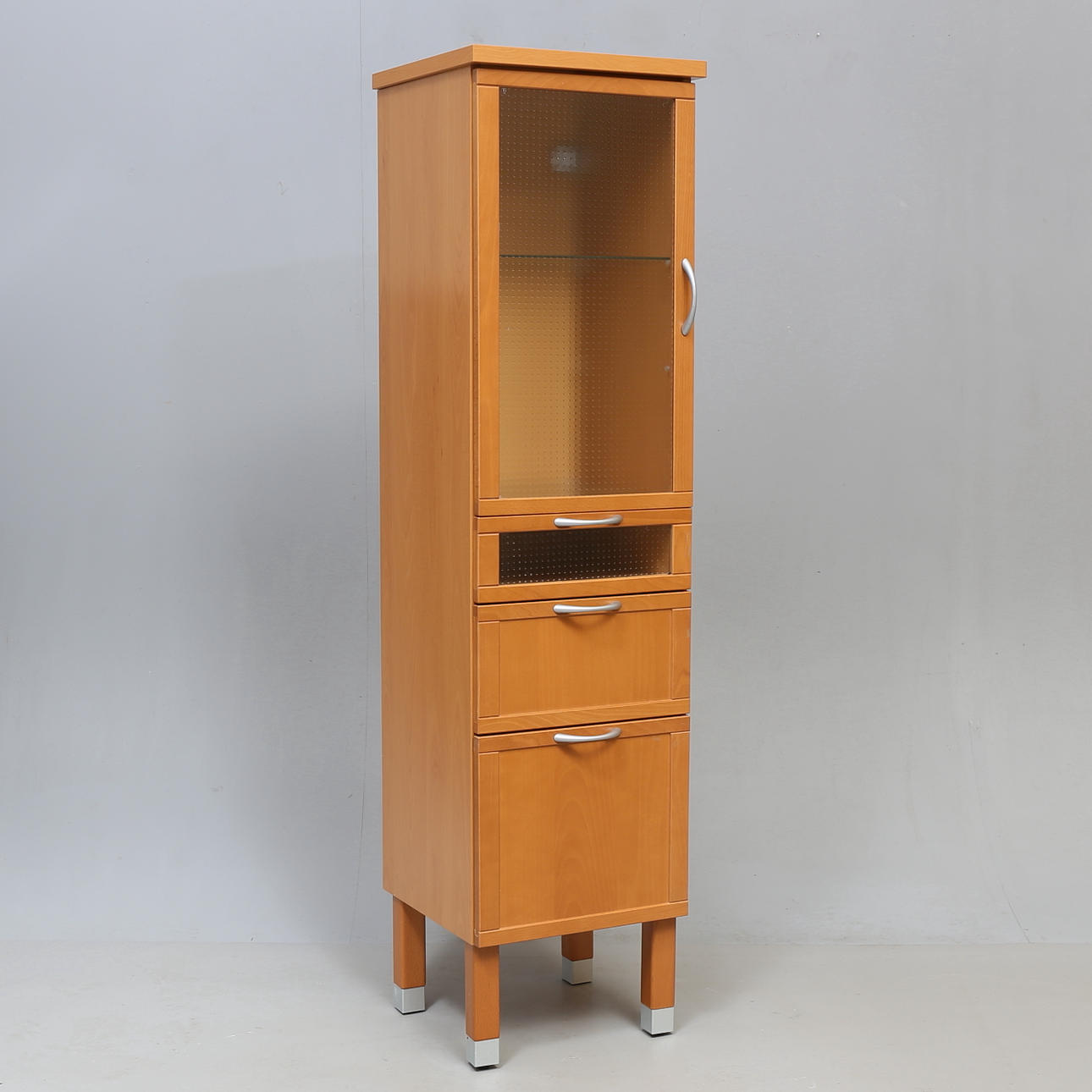 Mueble con 3 cajones y mueble alto. Mueble superior con balda de cristal. Largo 38, ancho 37, alto 150cm.