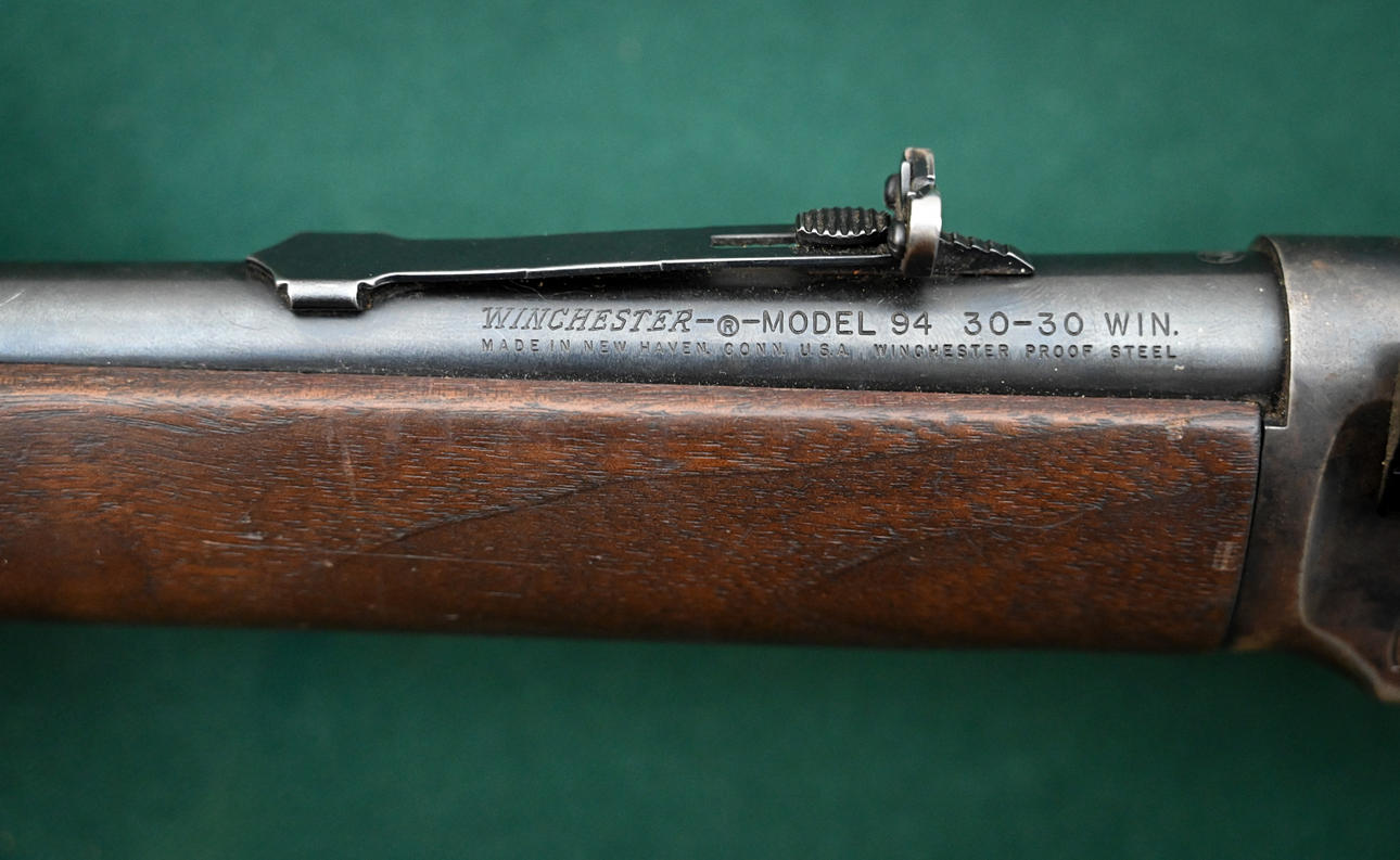 Gorila American Bygelreperter Marca Winchester mod.94 calibre .30-30 Longitud del cañón 51cm. Revista de cuerpo entero. Mira de rampa ajustable. Caja templada a la llama con grabado sencillo.Medalla en cantonera con texto “El Álamo.