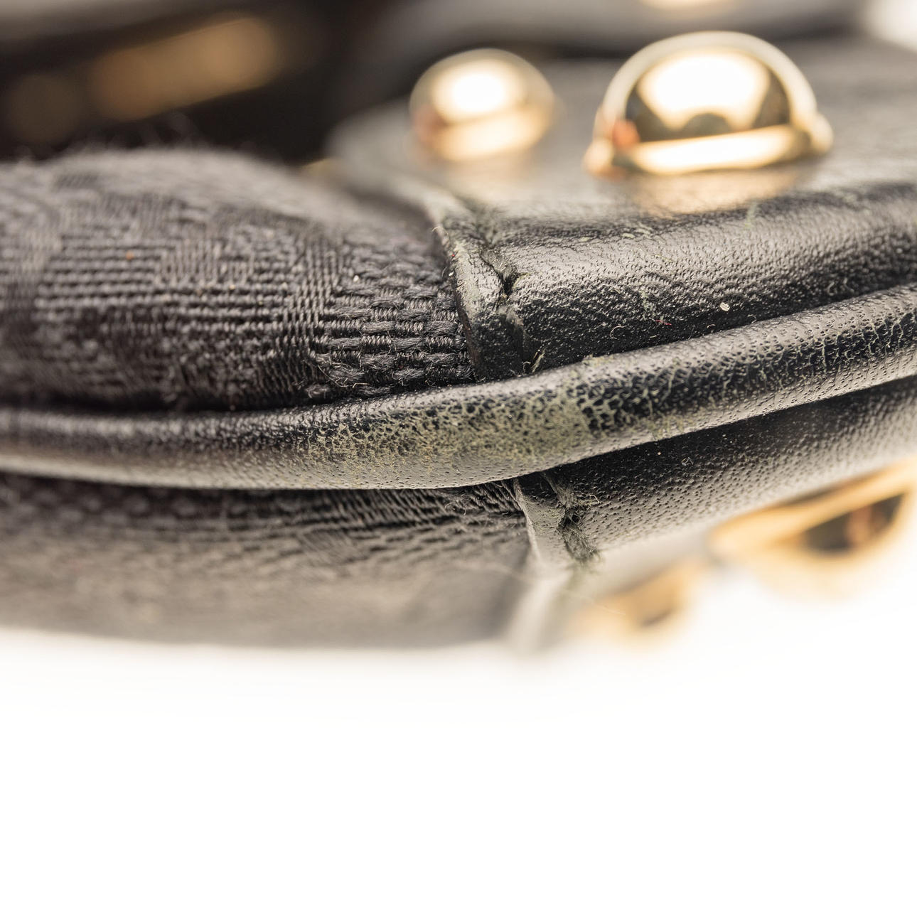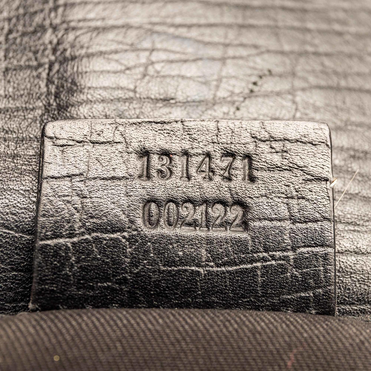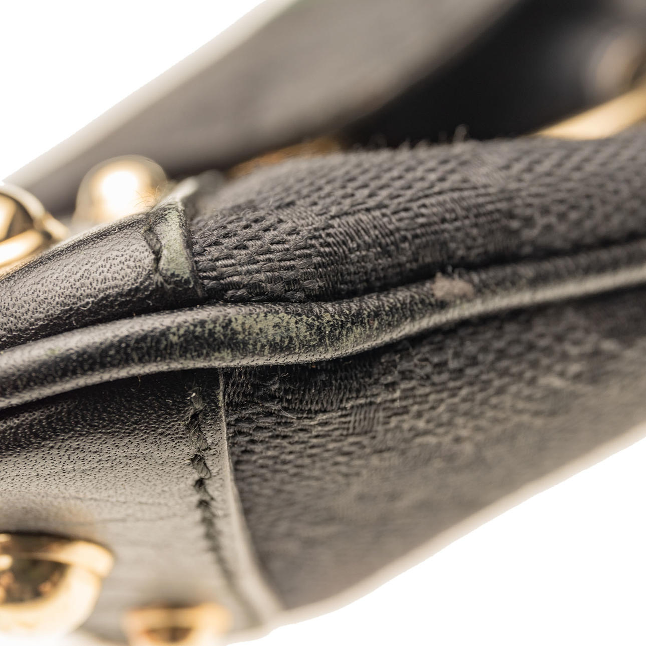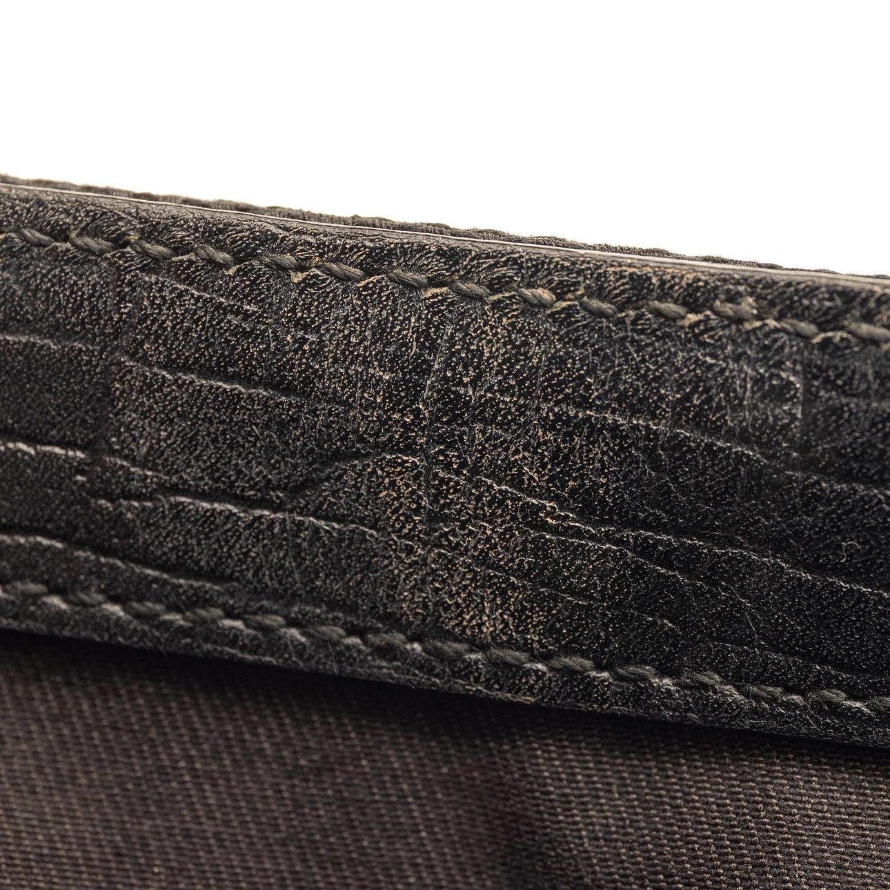 Lona estampada Monogram con detalles en piel. Decoración en metal. Bolsa de polvo incluida. Aproximadamente 37 x 16 x 4 cm.