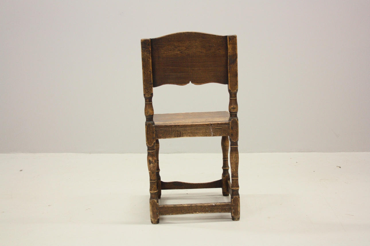 Patas delanteras torneadas, escalones. Altura 75 cm Ancho 36 cm Altura del asiento 40 cm.