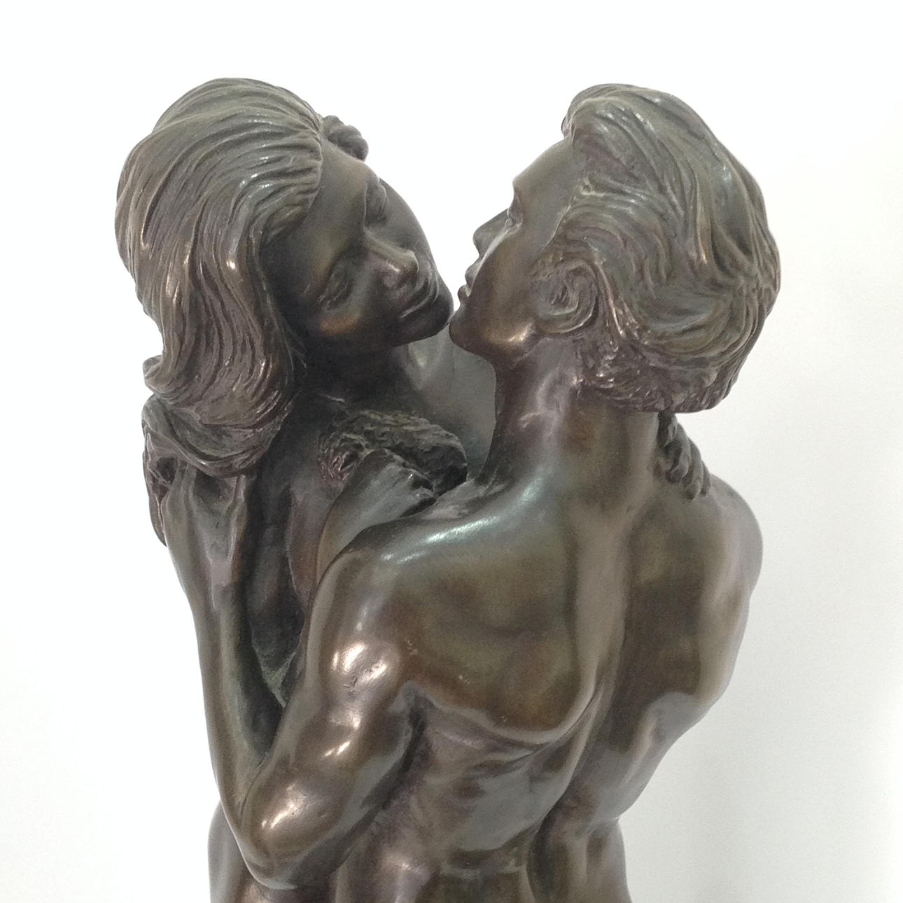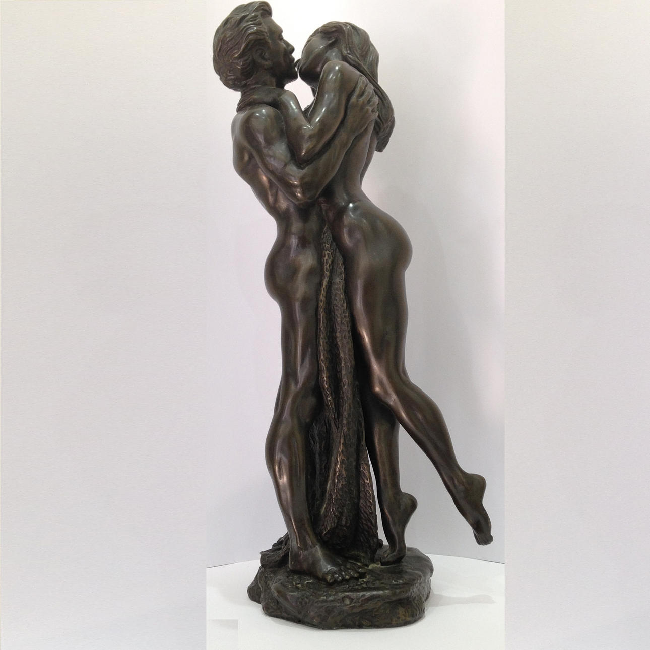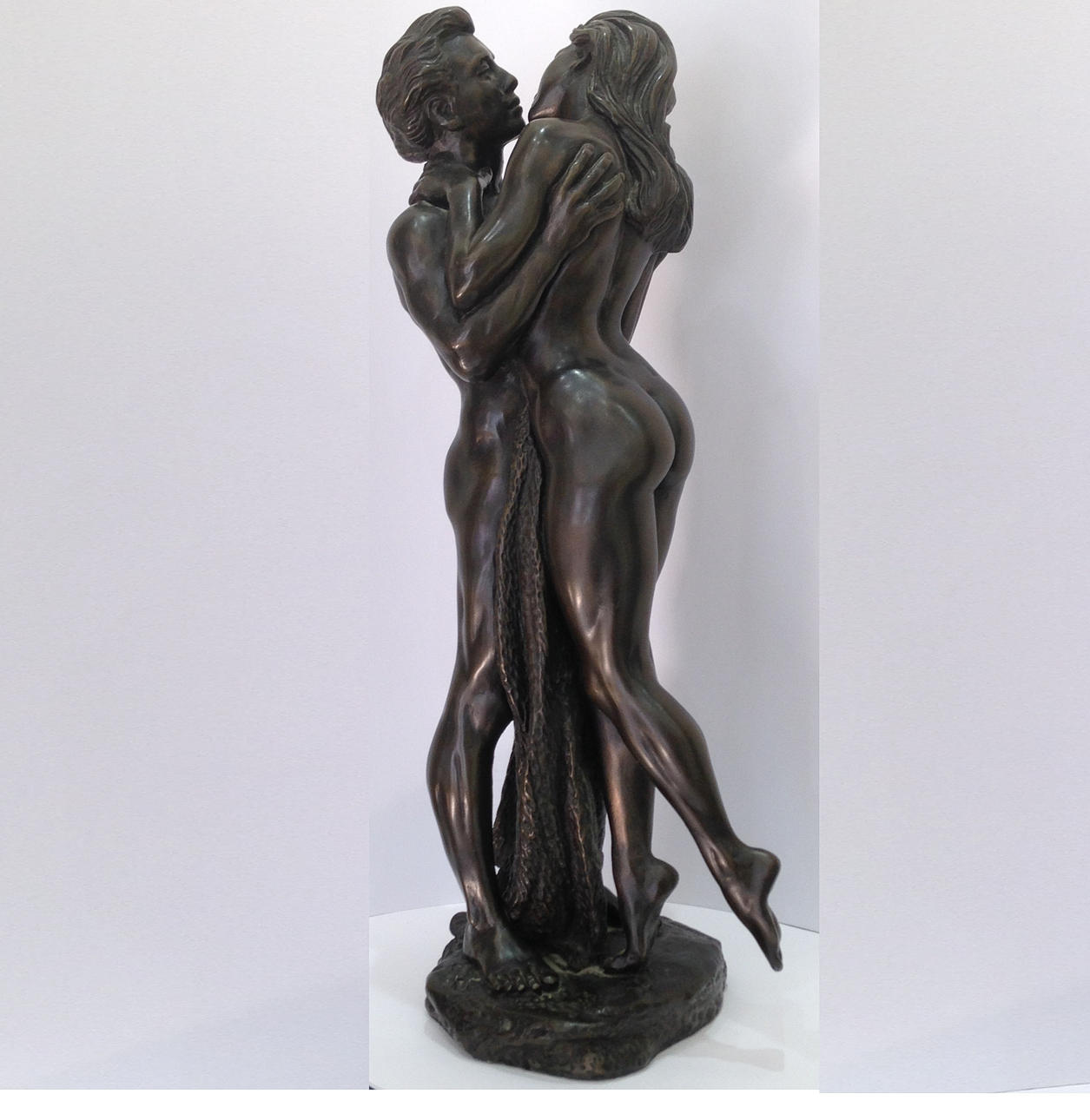 Una escultura de dos amantes encerrados en un abrazo apasionado por R. Cameron Esta escultura es de resina maciza fundida en frío con un acabado de efecto bronce La escultura mide aproximadamente 14"/37 cm de alto La base está grabada R.CAMERON El año aproximado de fabricación es 1999-2001 Total peso: 3368.5g.