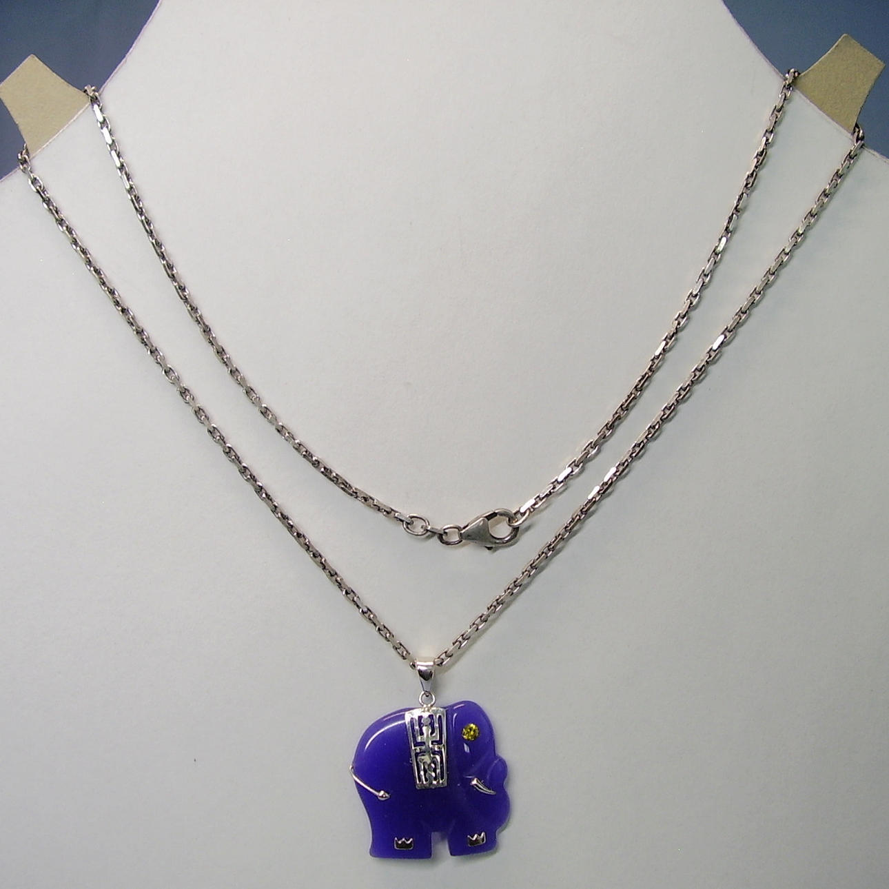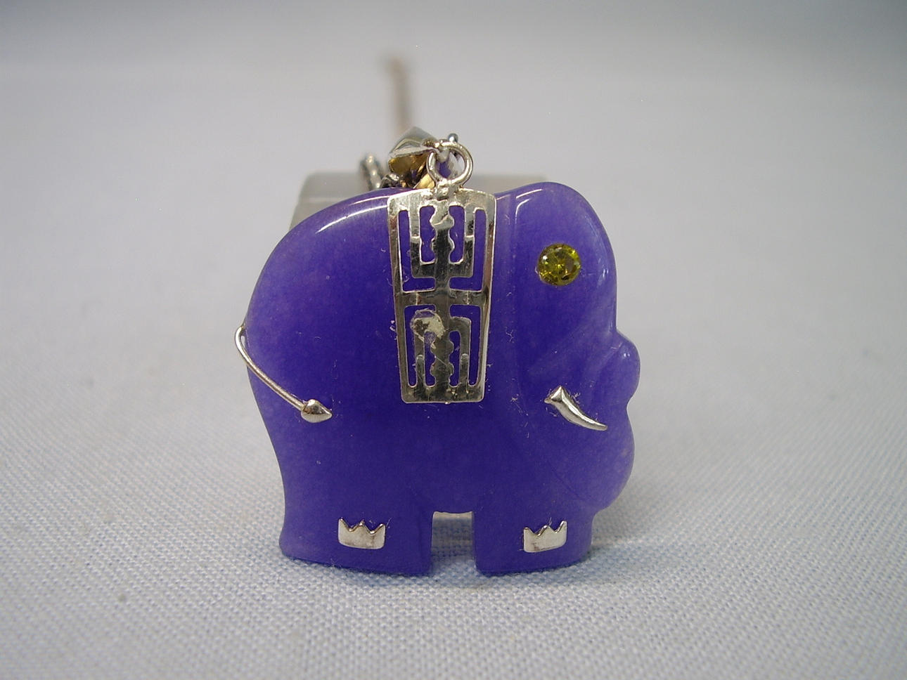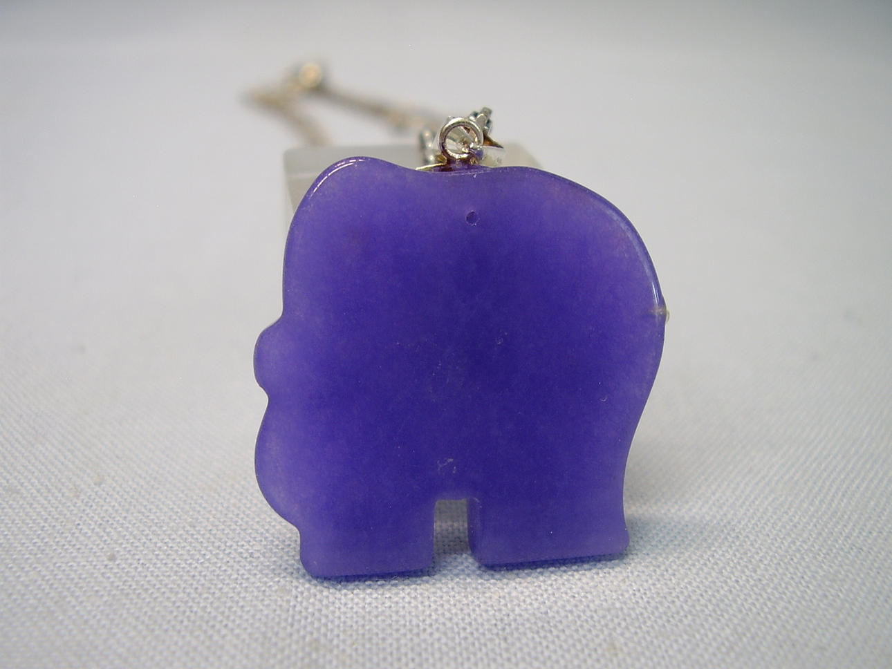 El colgante y la cadena están hechos de plata 925 y están marcados en consecuencia. Jade lavanda tallado en forma de elefante y pulido a mano.