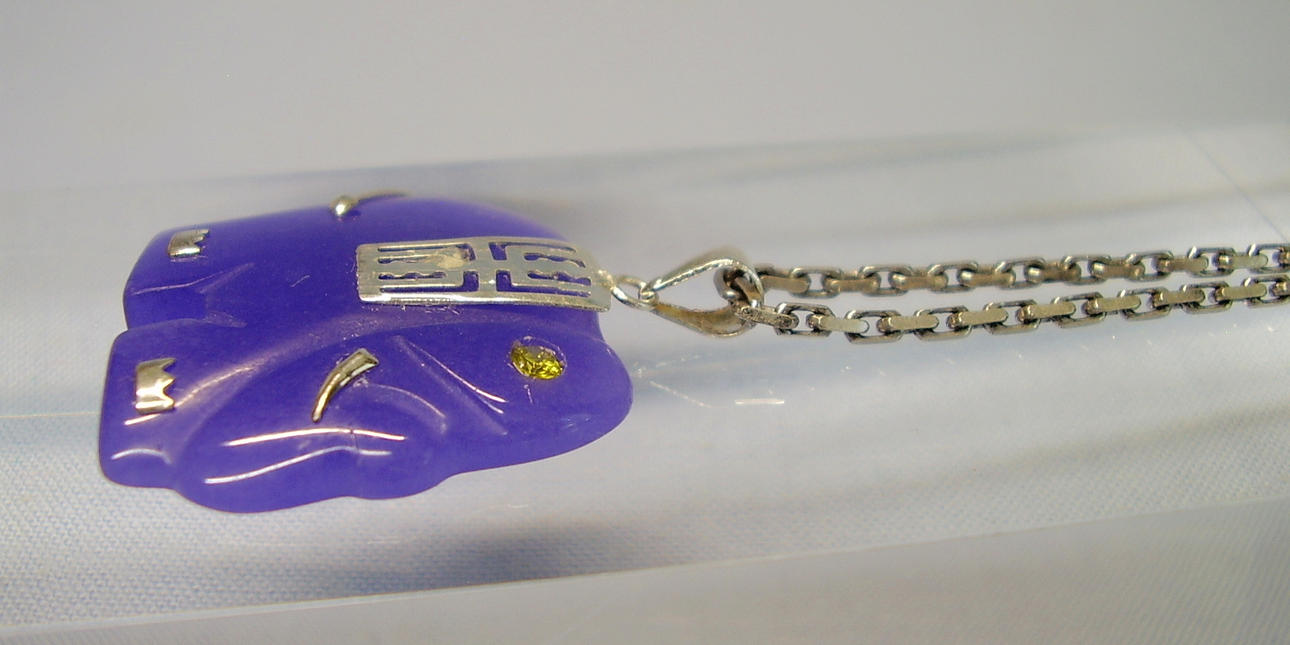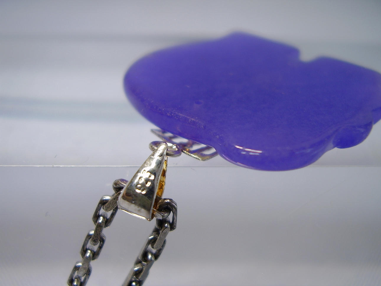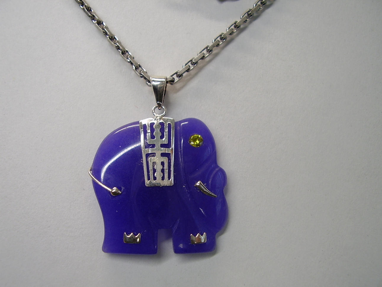 El colgante y la cadena están hechos de plata 925 y están marcados en consecuencia. Jade lavanda tallado en forma de elefante y pulido a mano.