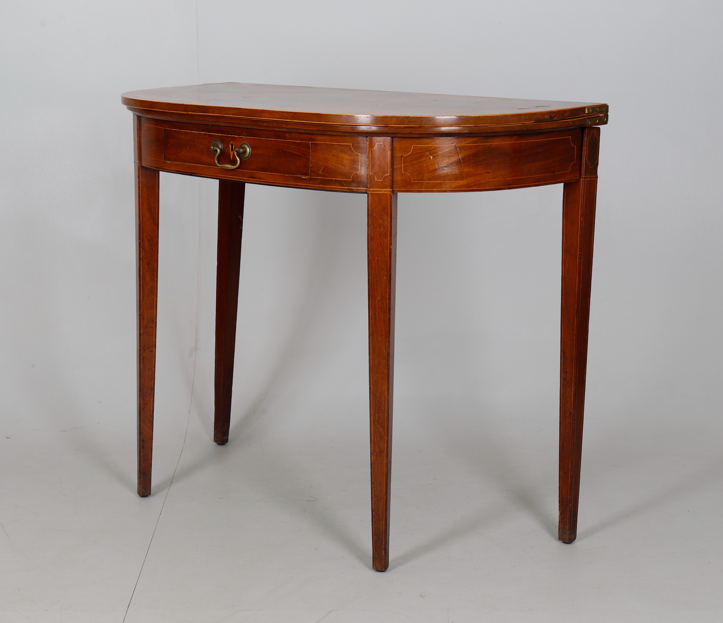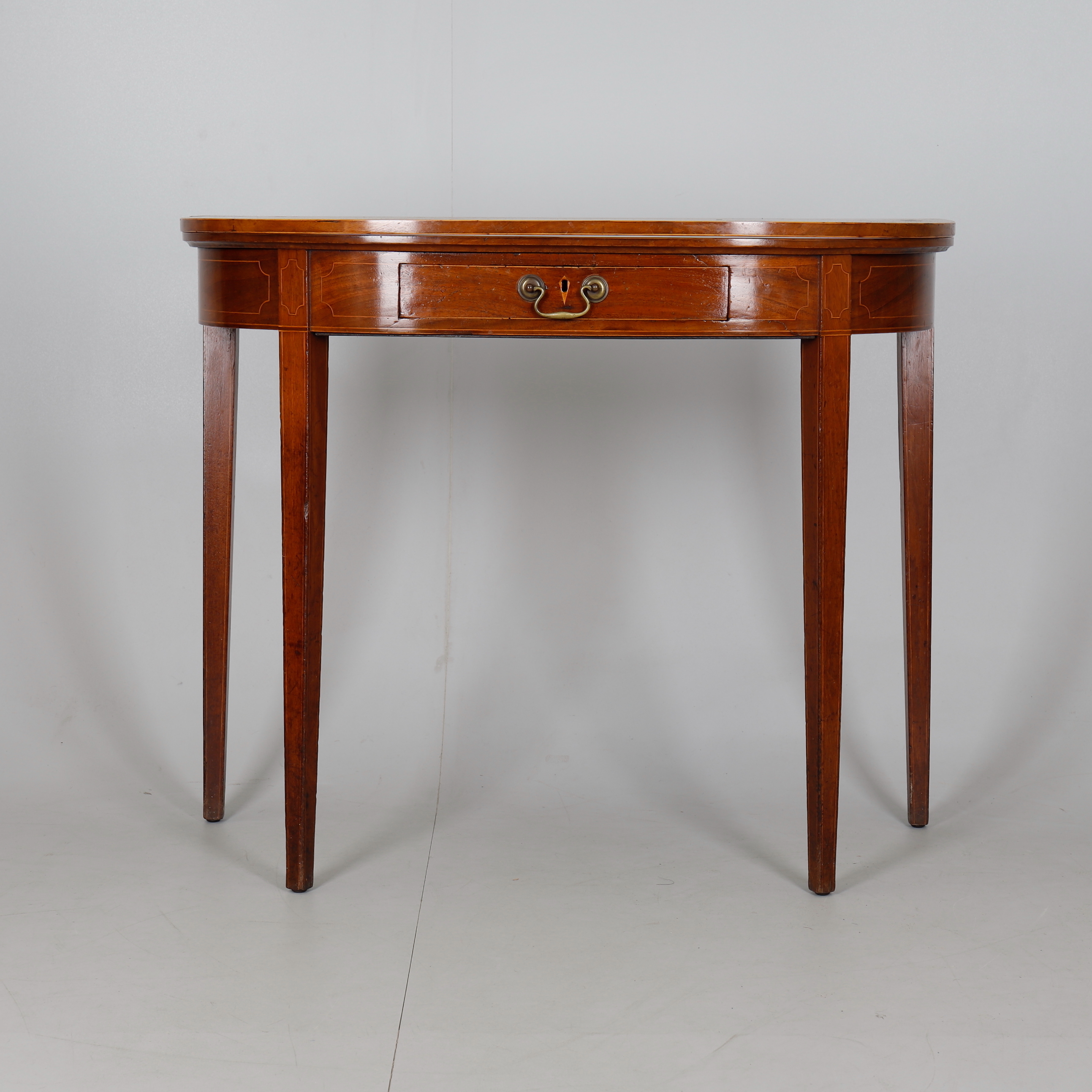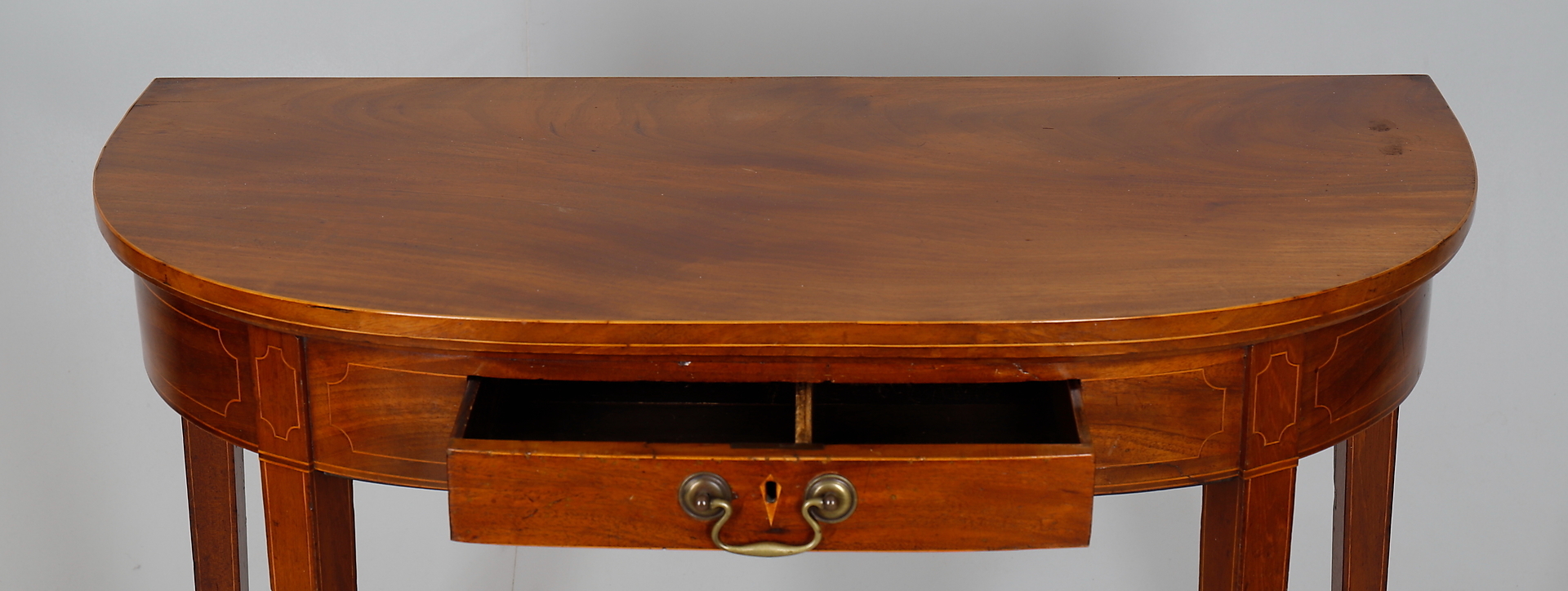 1137526. UNA MESA DE TÉ DEMI-LUNE DE CAOBA.