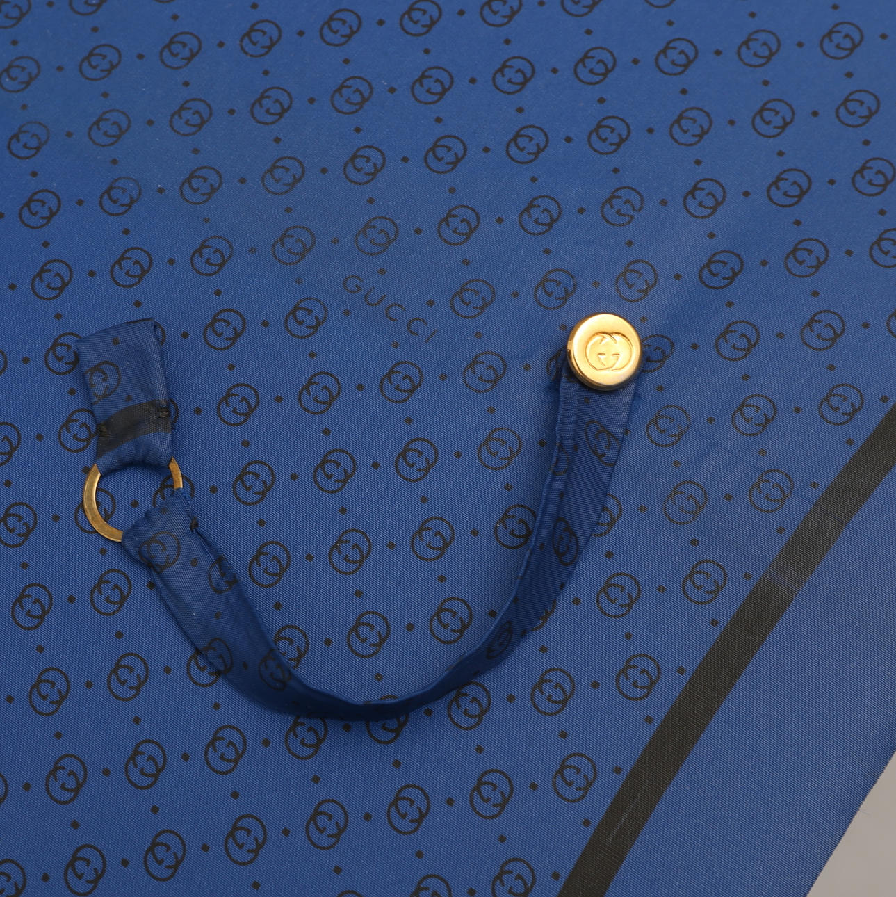 Monograma estampado en azul, marcado "GUCCI", "MADE IN IATLY".