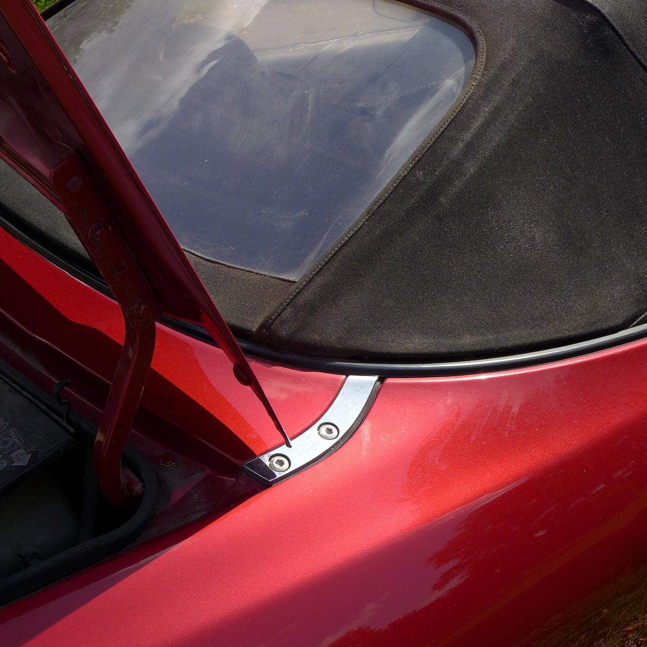 Un coche de verano en buen estado de uso, algunos arañazos, algunas pequeñas abolladuras.