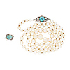 Oro blanco de 18K, turquesas talla cabujón, diamantes talla rosa, 0,04 cts aprox. y perlas cultivadas en degradado de 9 - 5 mm de diámetro. Gargantilla: 57 cm. Broche - acorta collar: 1,6-1,2 cm. 32,8 gr.