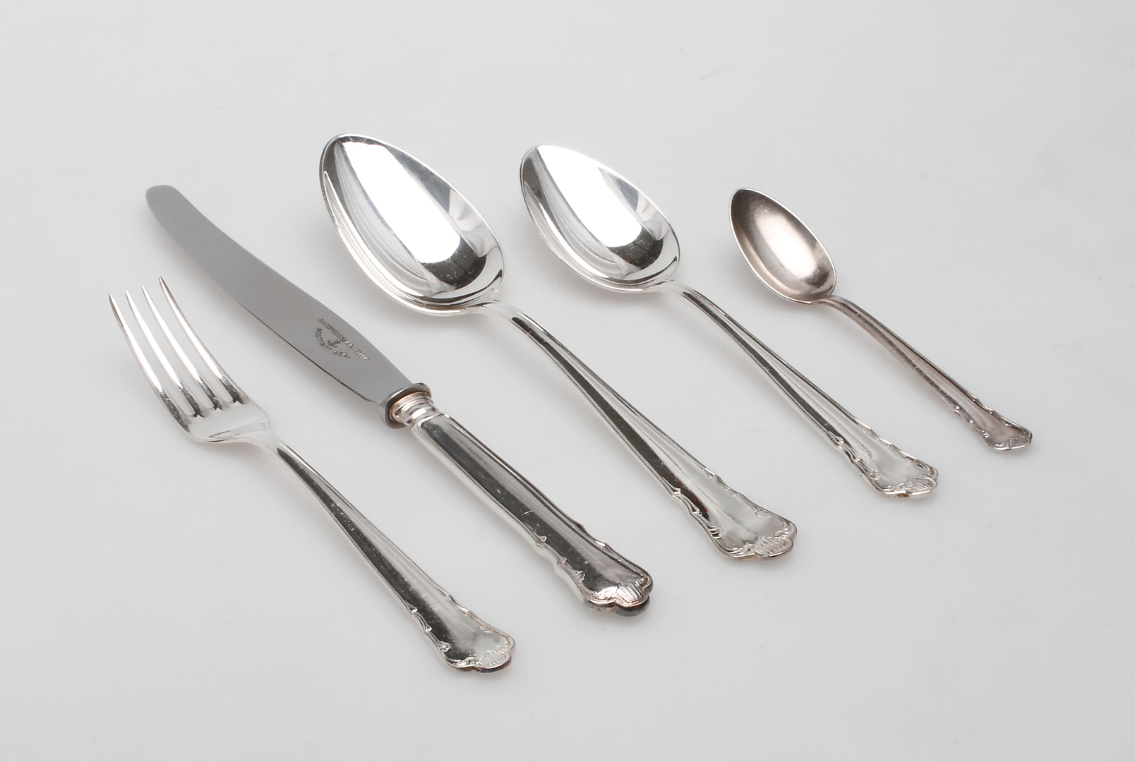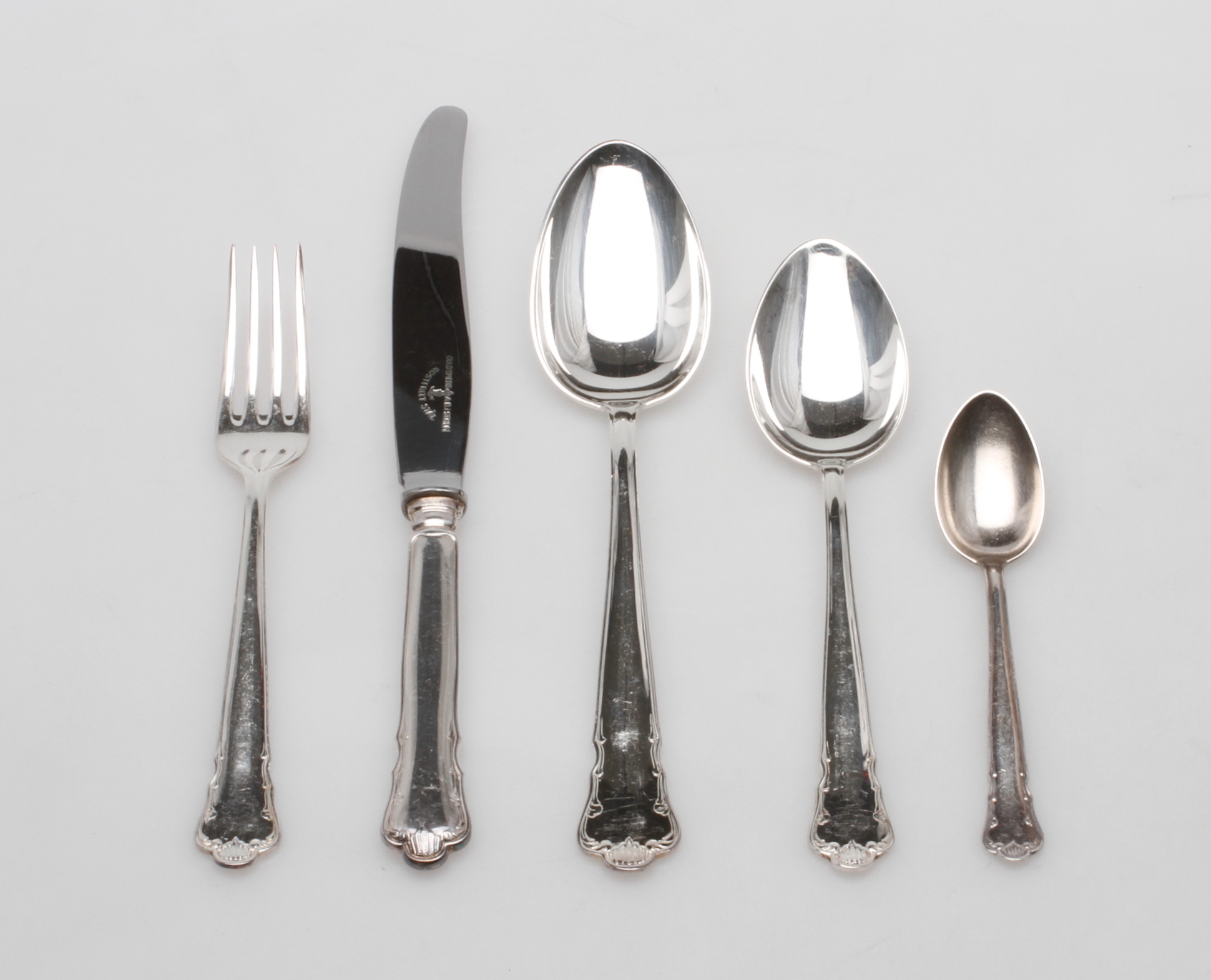 115840. CUBIERTOS, 58 piezas, alpaca, "Ingrid", siglo XX.