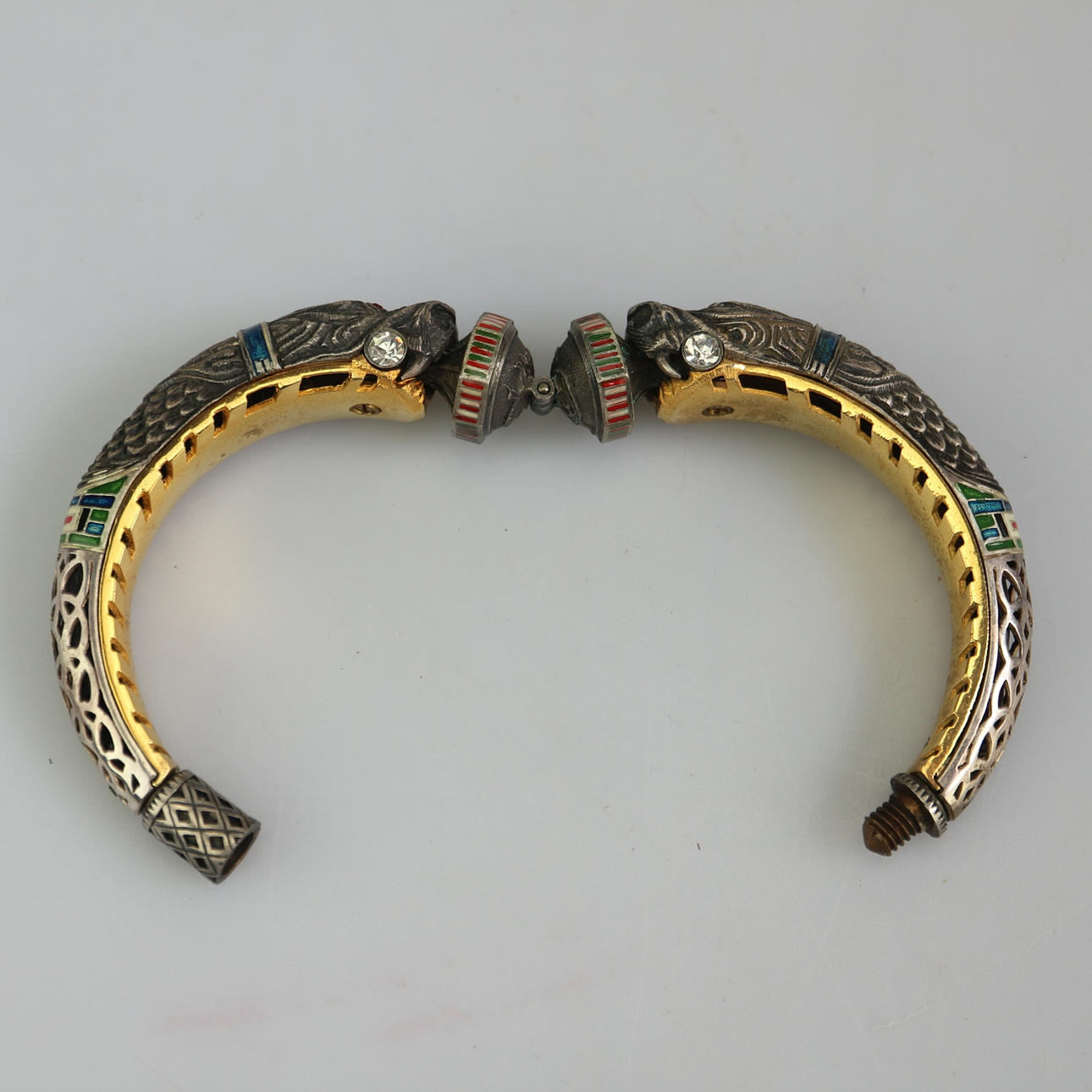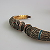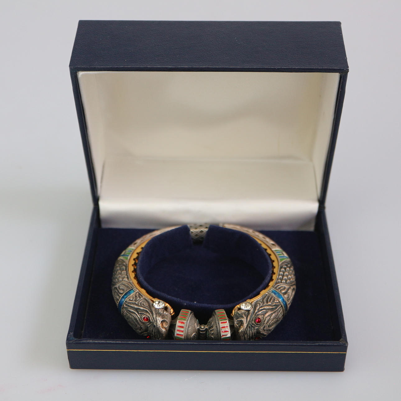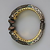 Brazalete chino, con forma y motivo de serpiente, que se puede cerrar con hilo, provisto de piedras preciosas, largo: 19 cm aprox.
