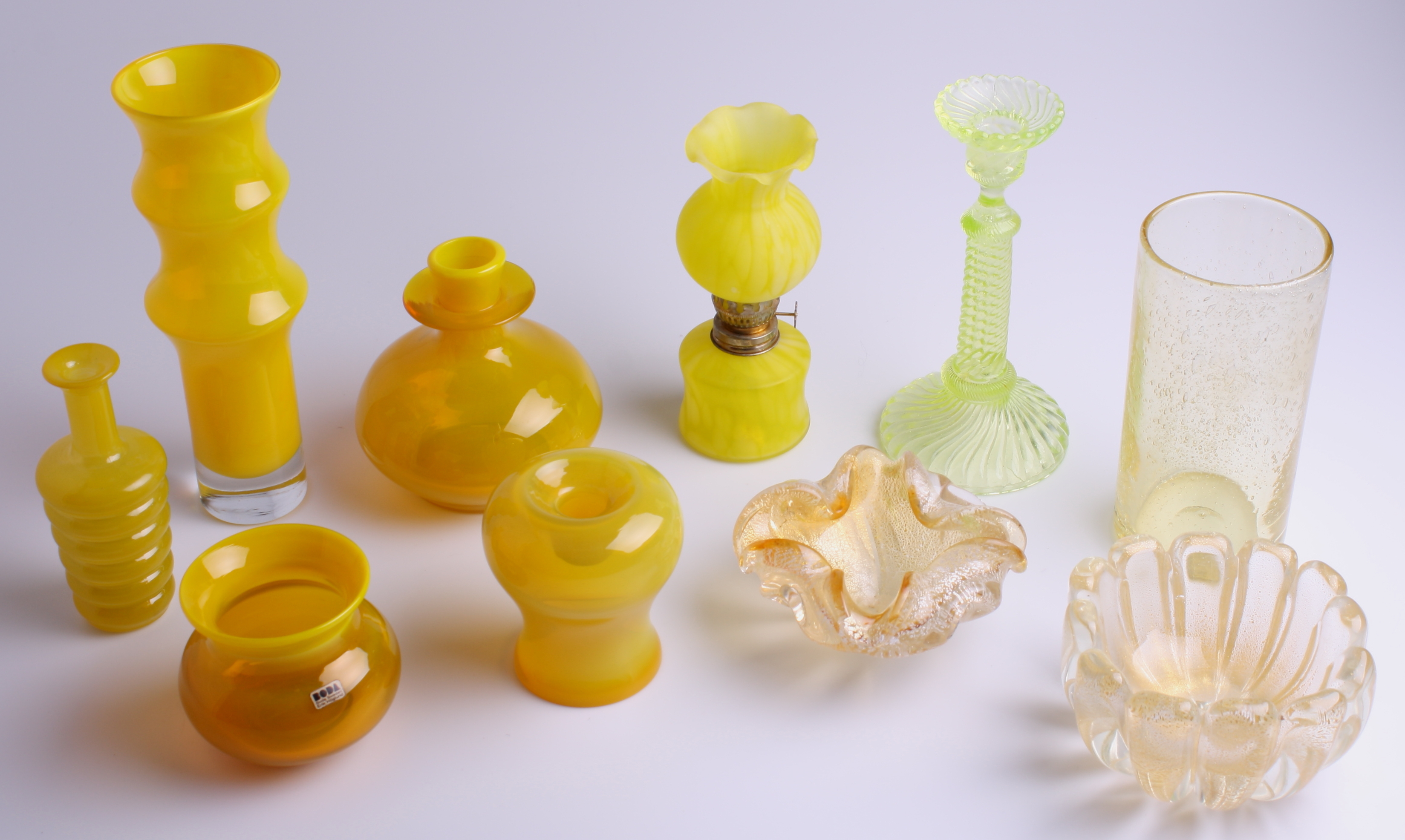 118169. OBJETOS DE VIDRIO, 10 uds, amarillo.