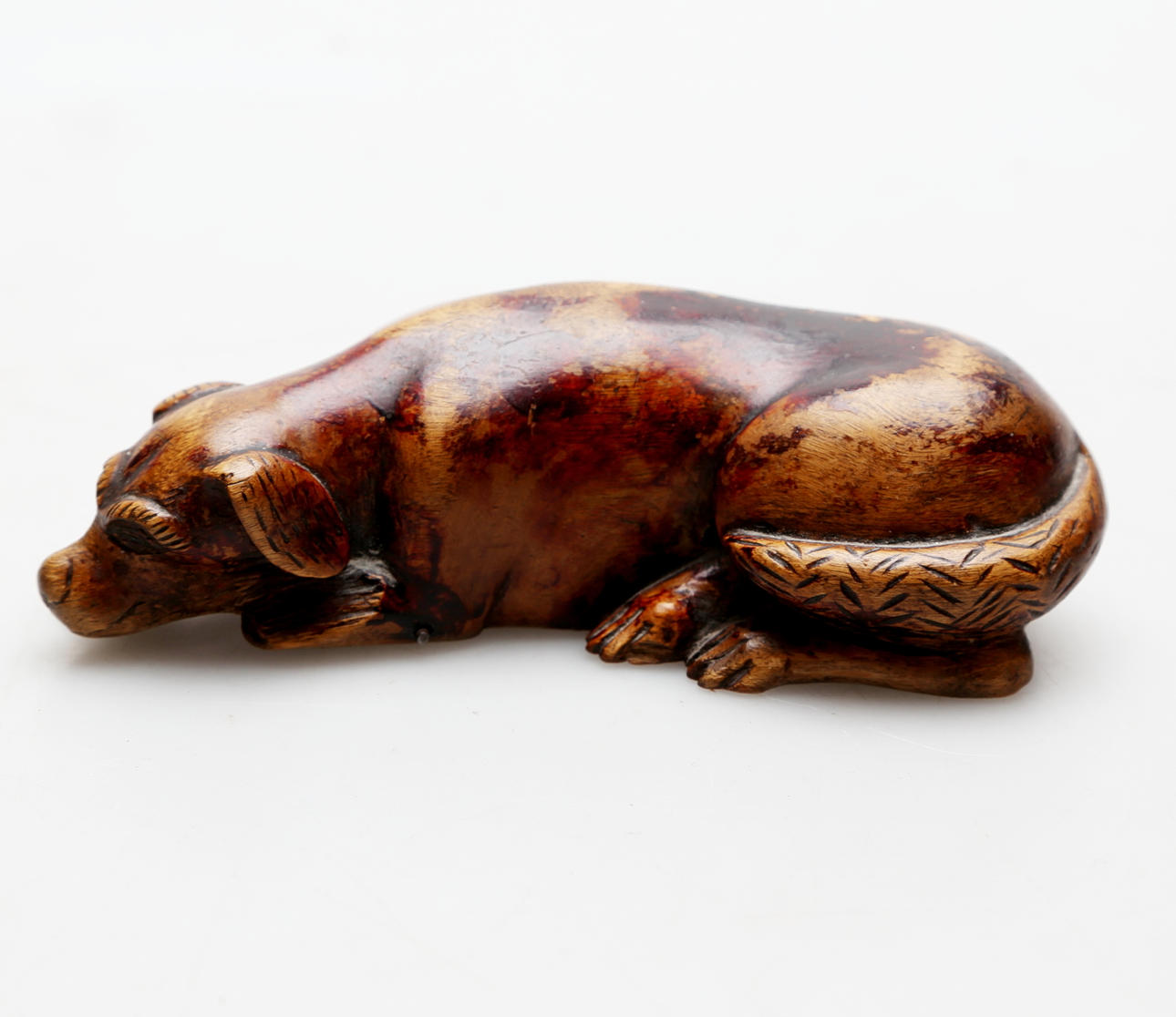 Antiguo perro rapé marcado 1906 y mide 13,5 cm de largo.