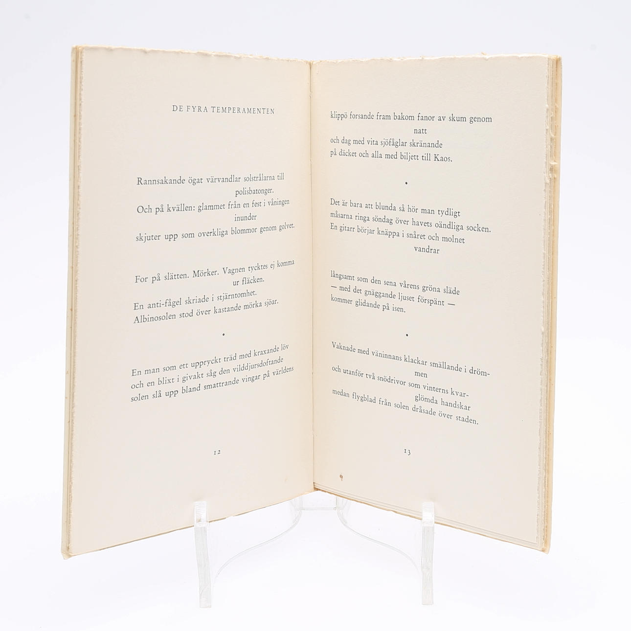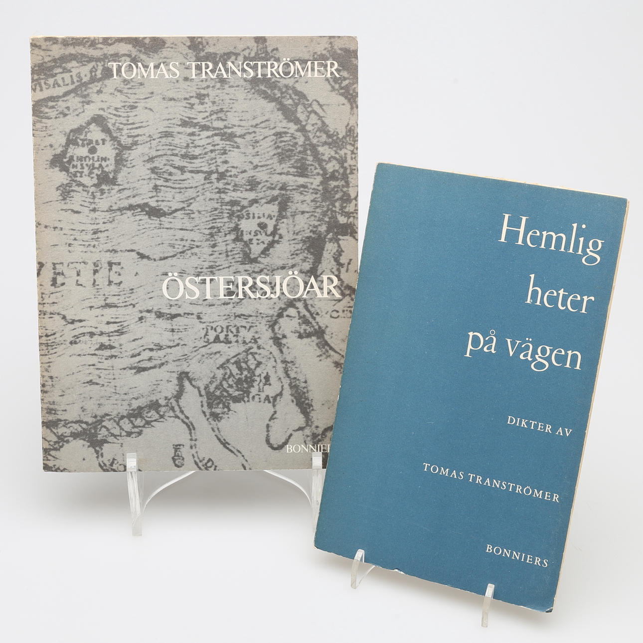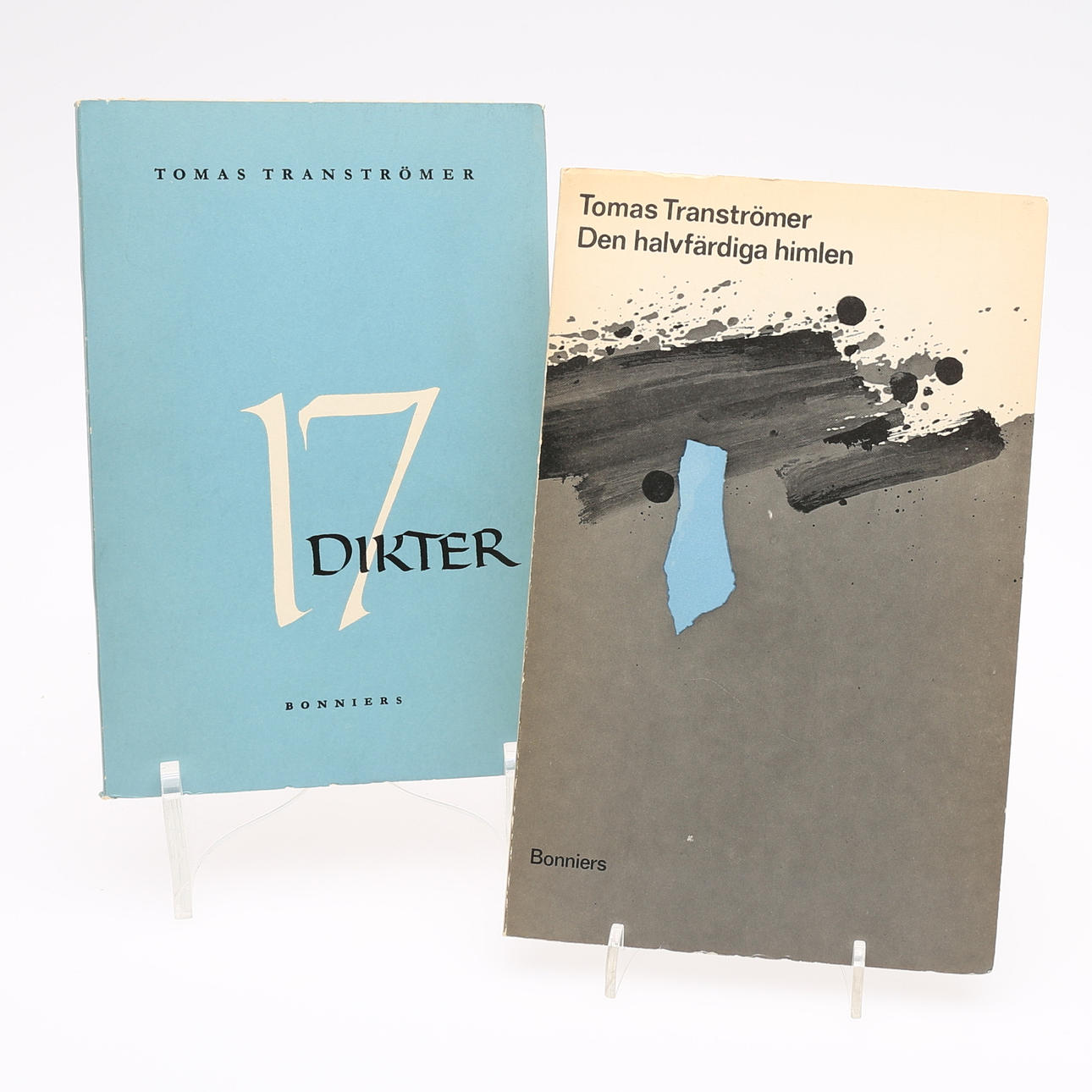 Tranströmer, Tomas. Cuatro obras 1. 17 poemas. Editorial de Albert Bonnier, 1954. Segunda edición mismo año que la primera. Grapado 8vo. 2. Secretos en el camino. Editorial de Bonnier, 1958. Grapado 8vo. 3. El cielo a medio terminar. Bonniers, 1962. Tercero cuarto mil. 4. Mares Bálticos. Editorial Bonniers, Estocolmo, 1974. Primera edición. Grapado 8vo.