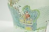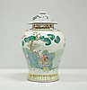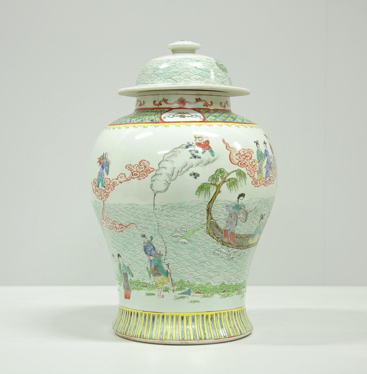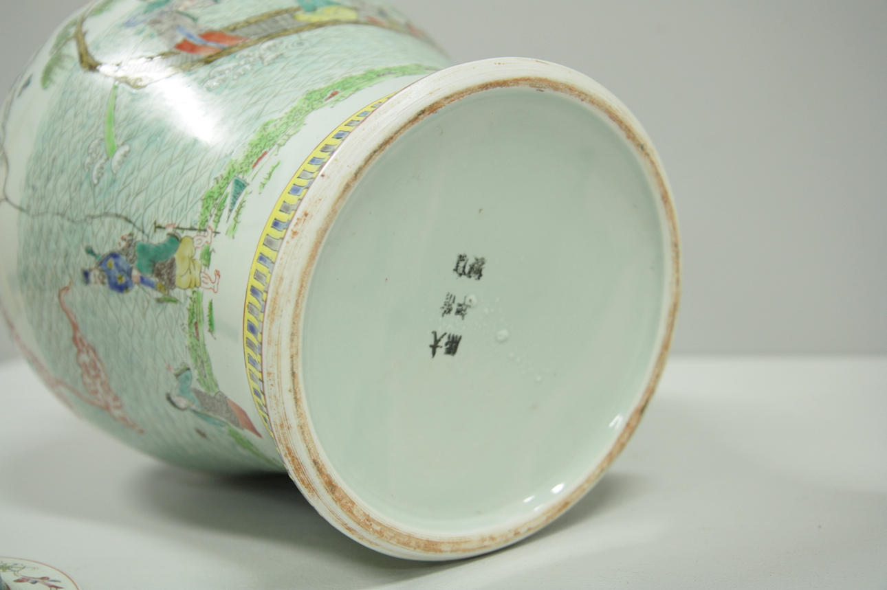 Estampado policromado con escenas de figuras y flores. Altura unos 42 cm.
