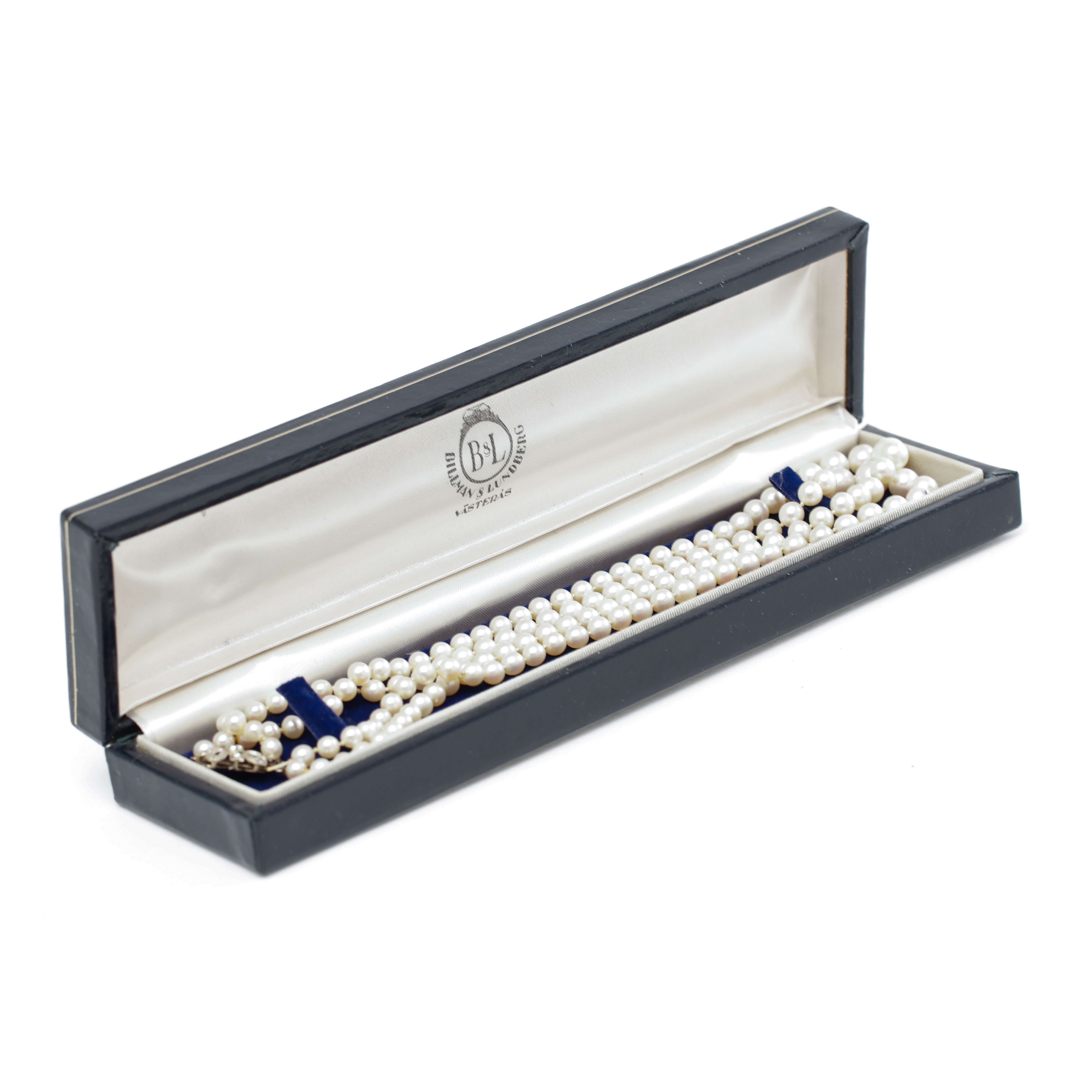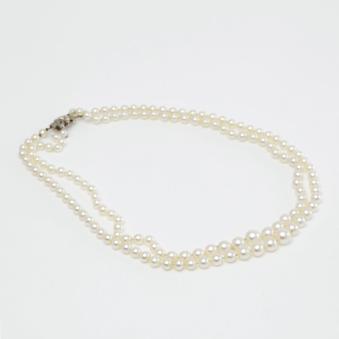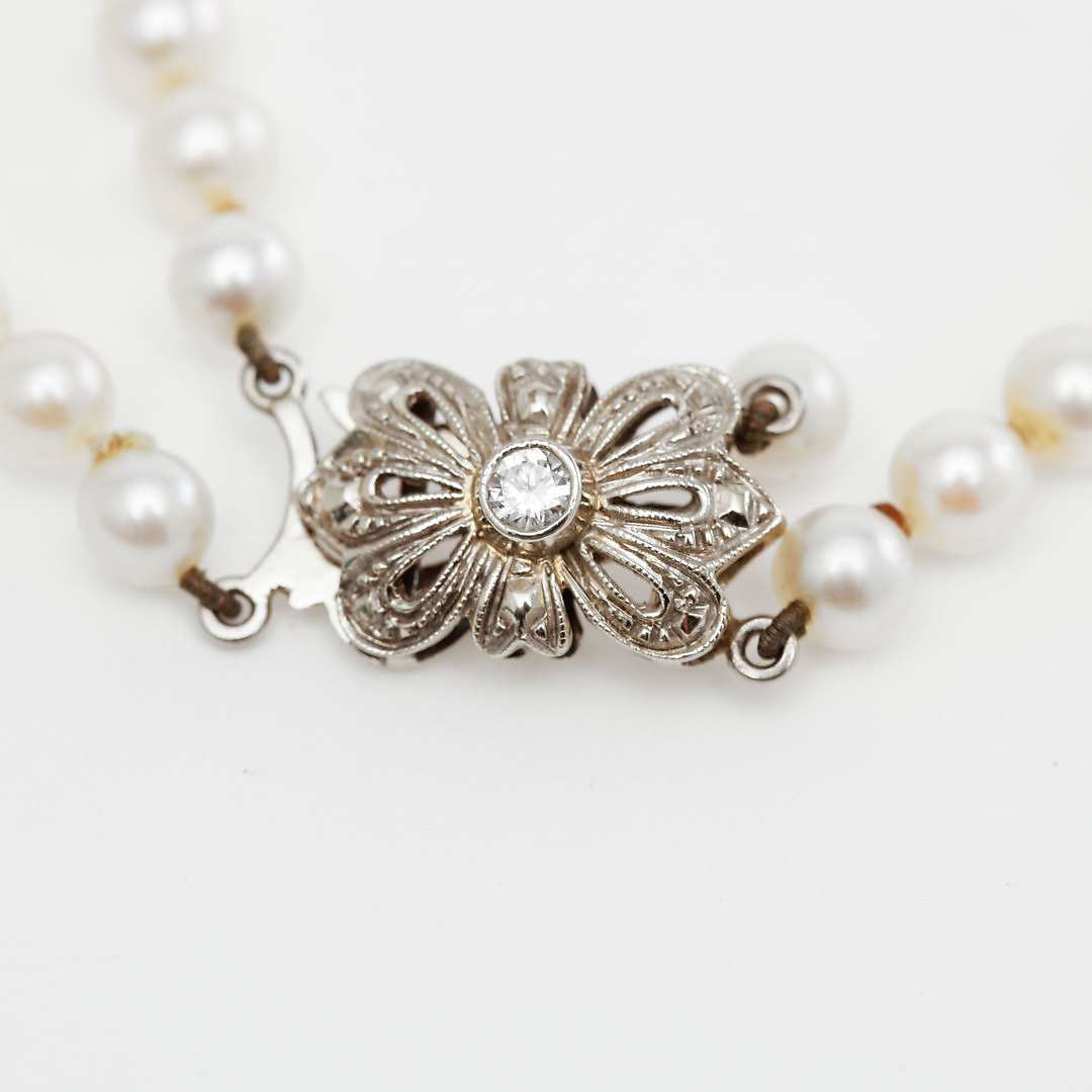 1199415. COLLAR PERLAS, cierre de oro blanco con diamante.