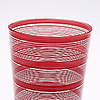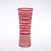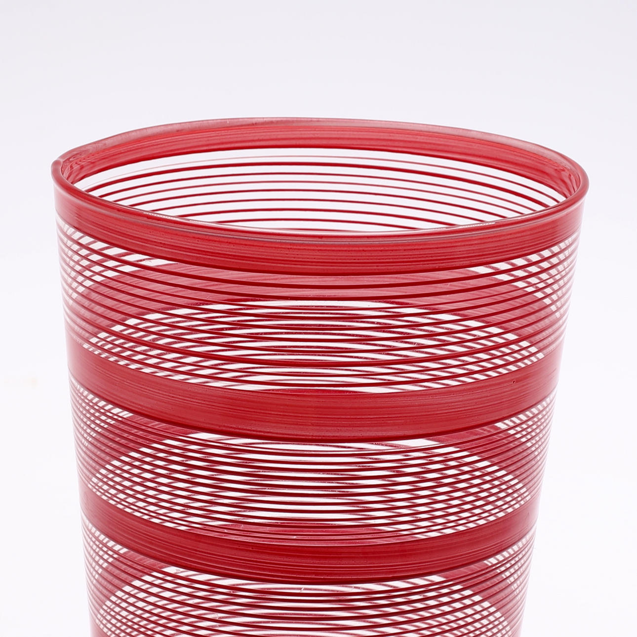 Florero, "Zviss", Ingegerd Råman para Orrefors, vidrio transparente con decoración de borde rojo, rotulado y grabado "Orrefors", altura 27 cm.