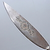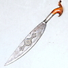 La longitud de la hoja de aproximadamente 42,5 cm. Largo total 64 cm aprox. Empuñadura con bisel plateado.