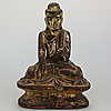 Raro y excepcional Buda lacado, Birmania, Estados de Shan, siglo XIX, gesto de mudra de Bhumisparsha, en equilibrio, altura 29 cm.