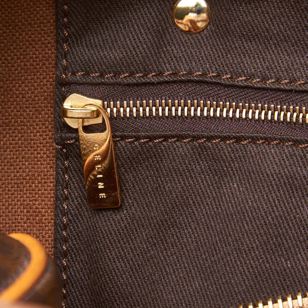 Piel sintética con estampado de monogramas con detalles y asas de piel. Cierra con cremallera. Compartimento interior con cremallera. La altura de la bolsa sin asa es de aproximadamente 19 cm. Ancho aproximado 24 cm. Profundidad aproximada de 13 cm.