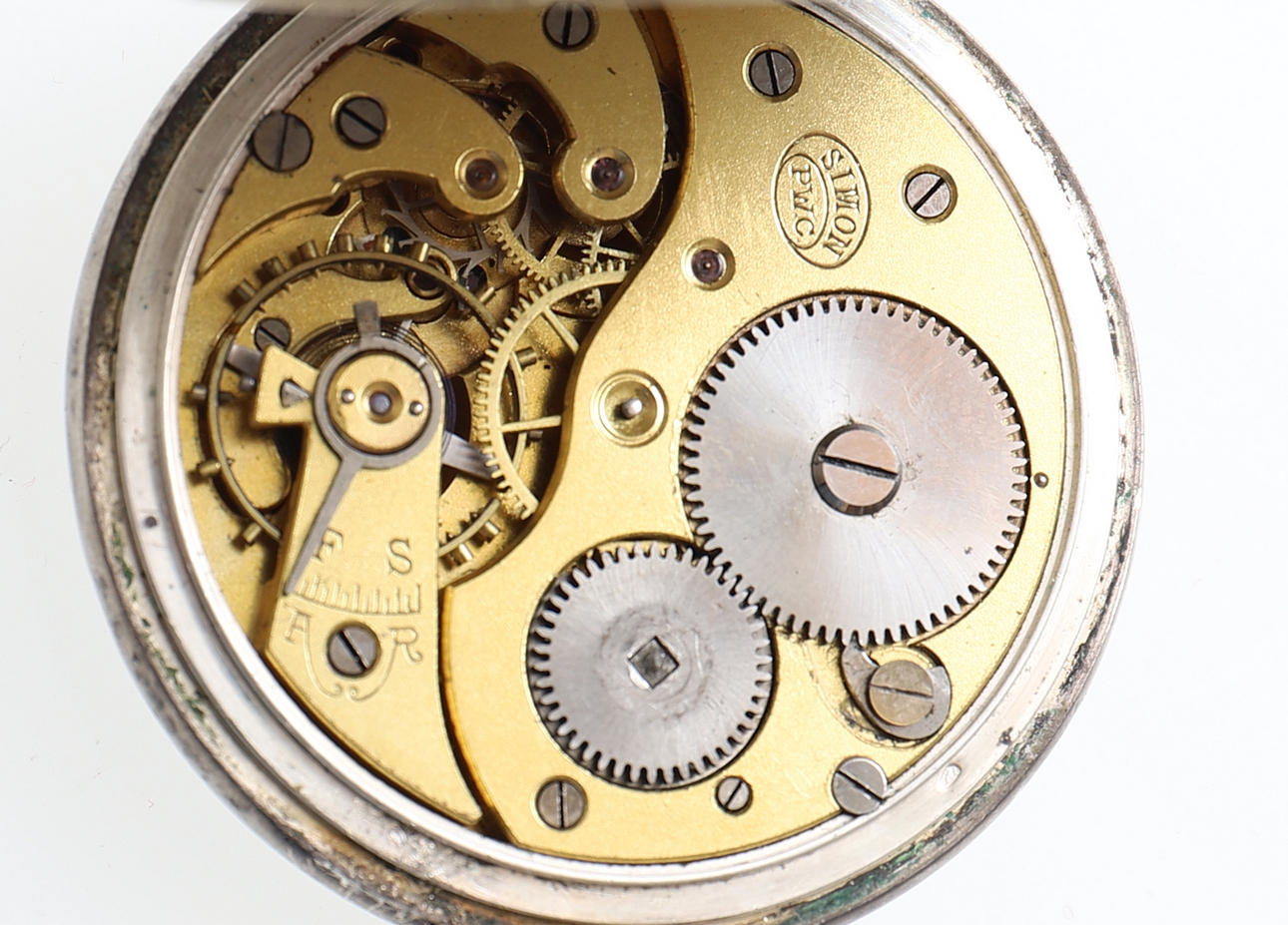 Reloj de bolsillo, rotulado 0.800, número 1282 64, movimiento rotulado Simon PWC.