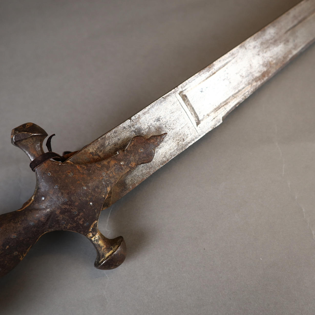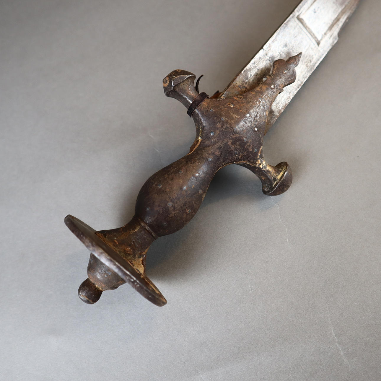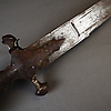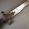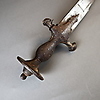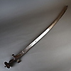 Sable (tulwar) - India, siglo XIX, hoja de un solo filo ligeramente curvada, empuñadura de hierro de forma típica, pomo en forma de disco con roseta, L. aprox. 90 cm.