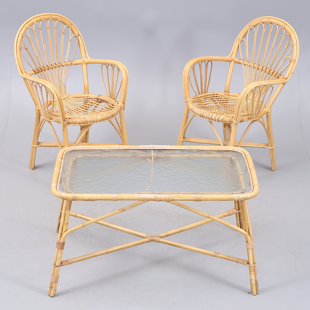 1237731. MUEBLES DE RATÁN, 3 partes, década de 1900.