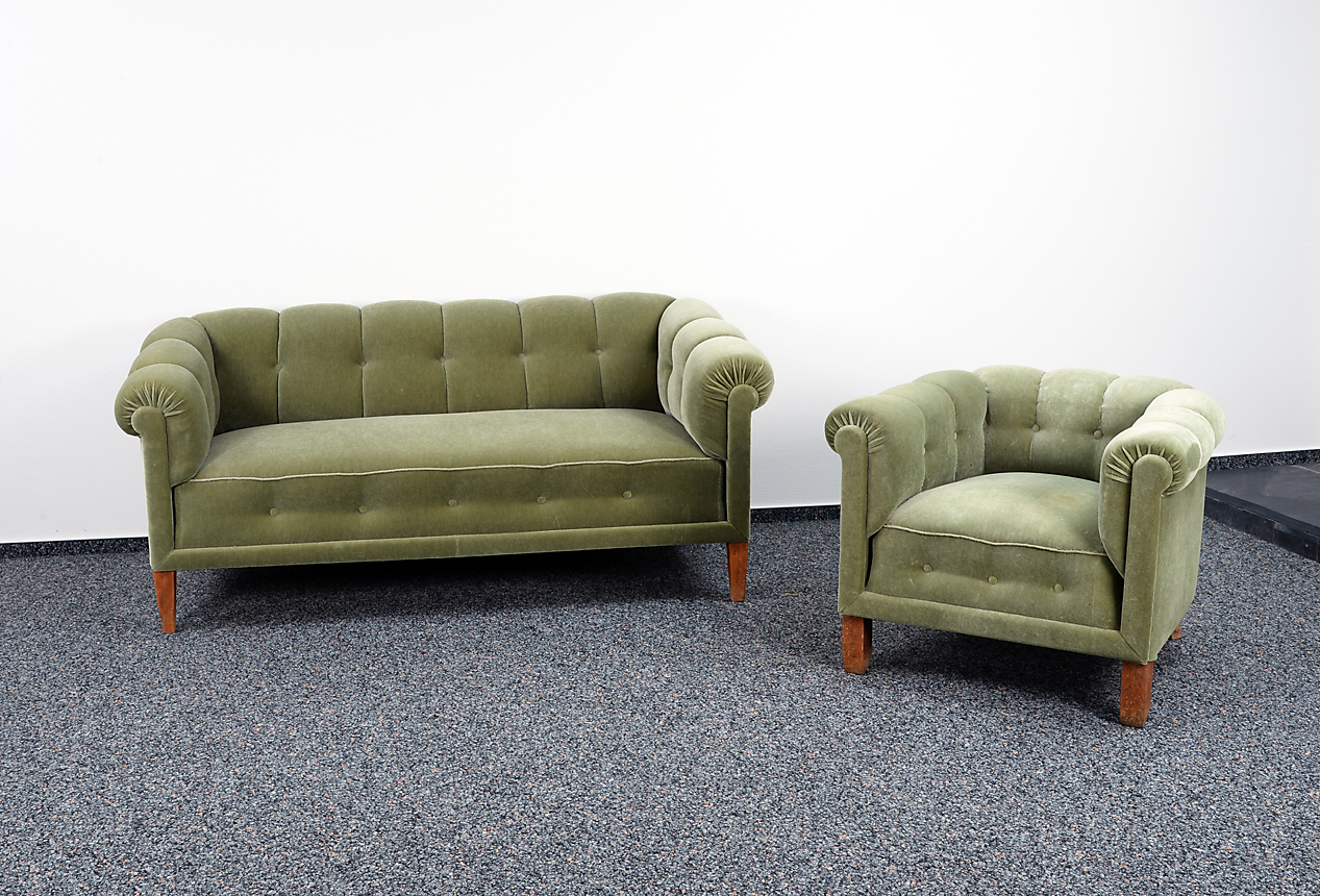 1238579. sofá y sillón. Cubierta verde menta aterciopelada.