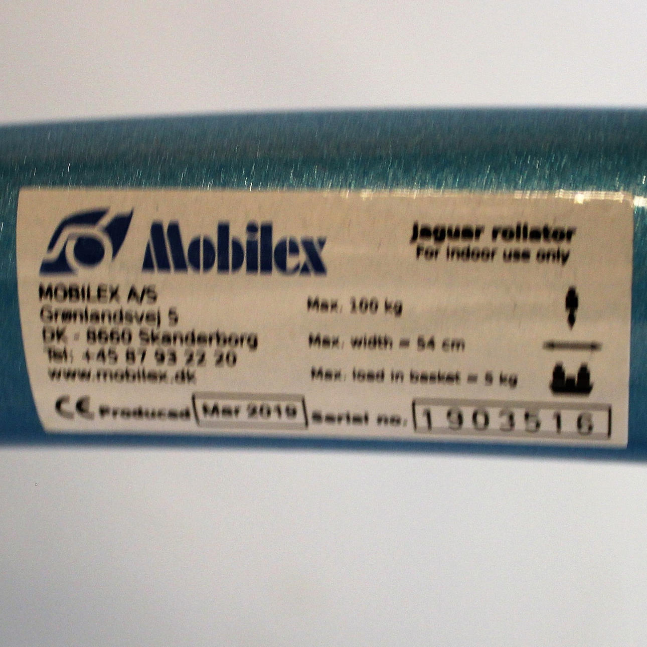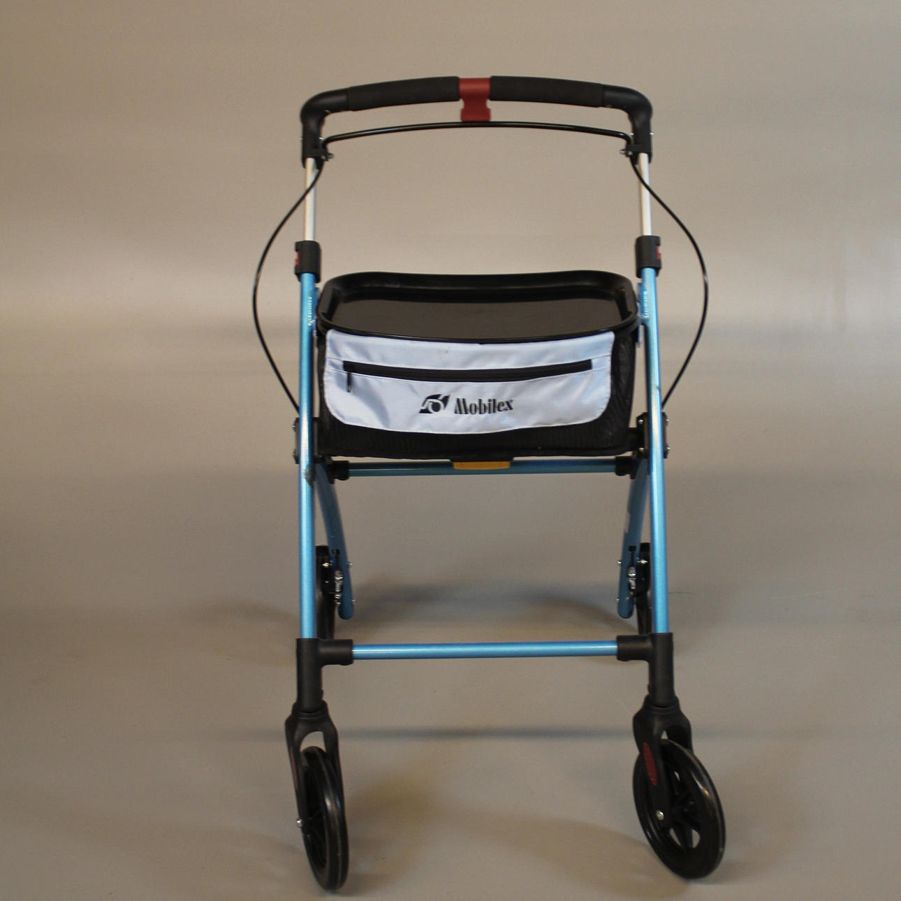 con cesta de desahogo y bandeja. Altura del mango de empuje 83-102 cm. ancho exterior 54 cm. Peso máximo del usuario 100 kg.