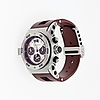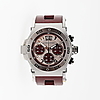 Caja de acero con 47,5mm de diámetro. Correa de caucho color rojo con cierre desplegable en acero. Movimiento automático. Esfera color rojo y plata. Calendario a las doce. Función cronograph. Cristal zafiro. Corona a rosca. año 2006.