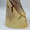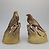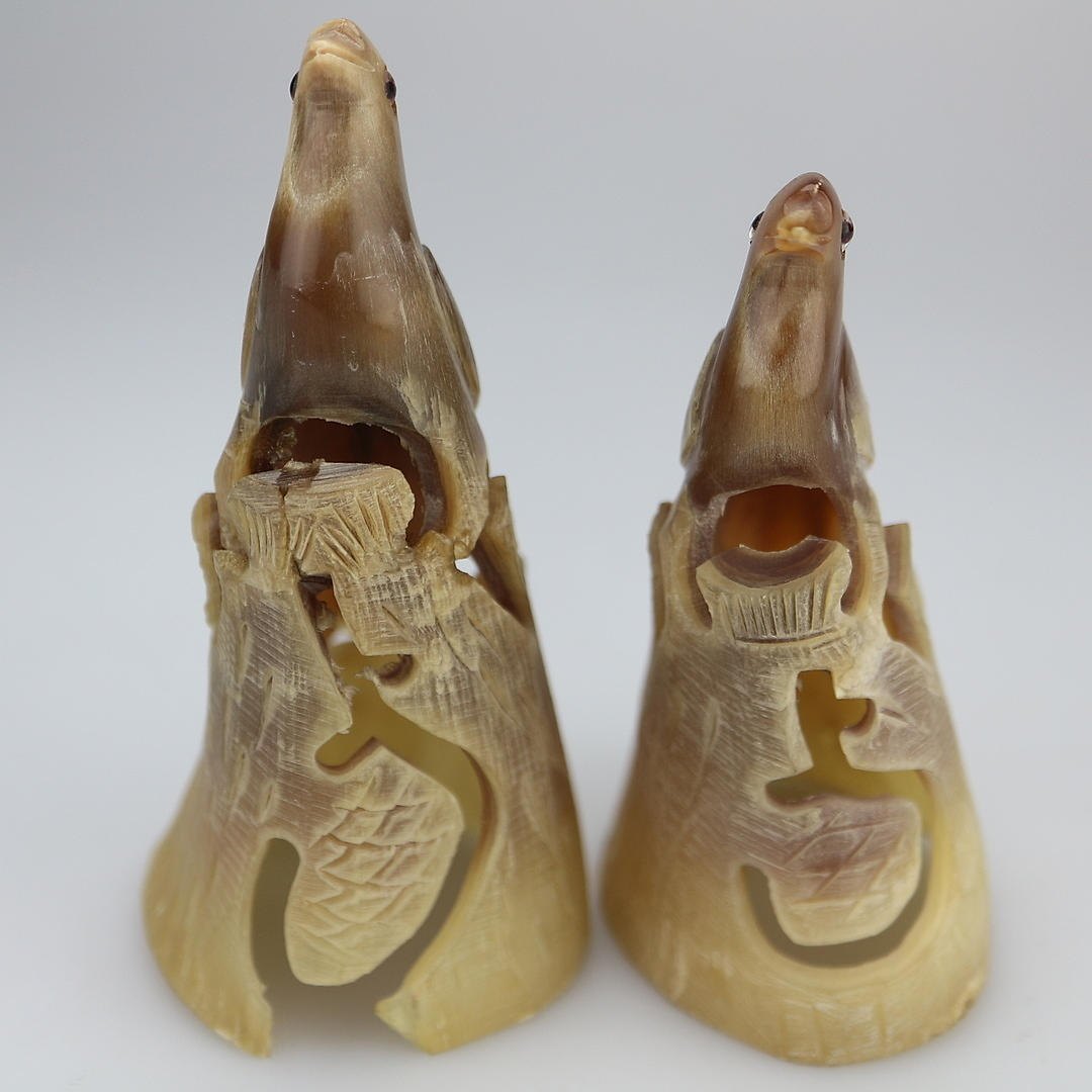 Dos figuras de pájaros hechas de cuerno real, altura: 12 y 10,5 cm., muy raras, pintura tallada.