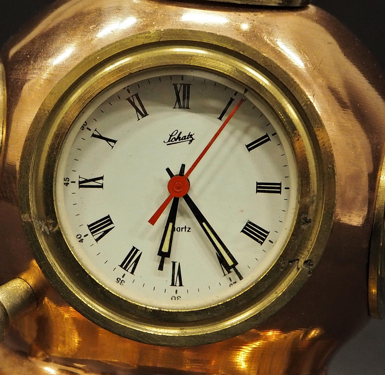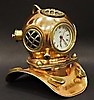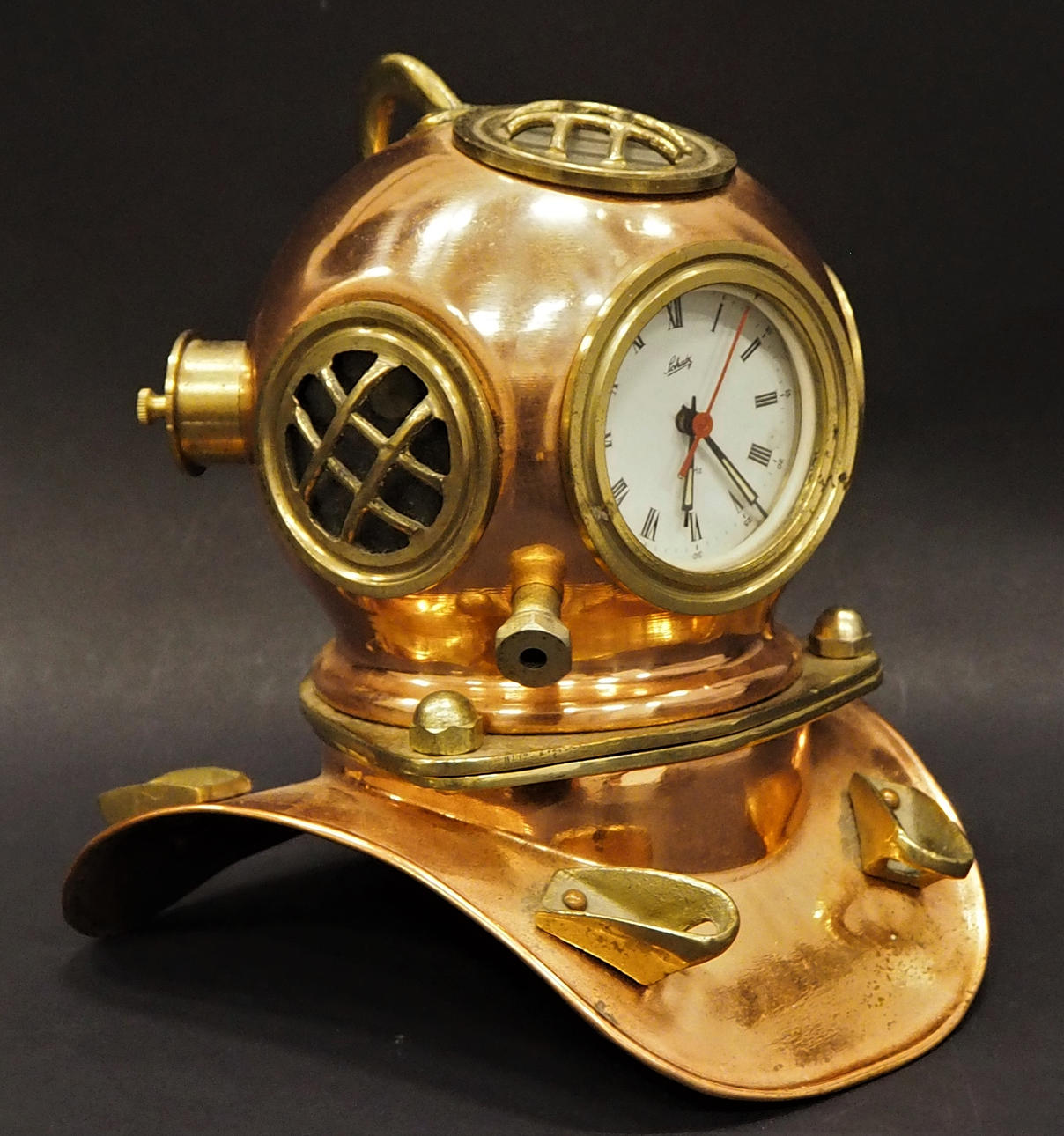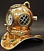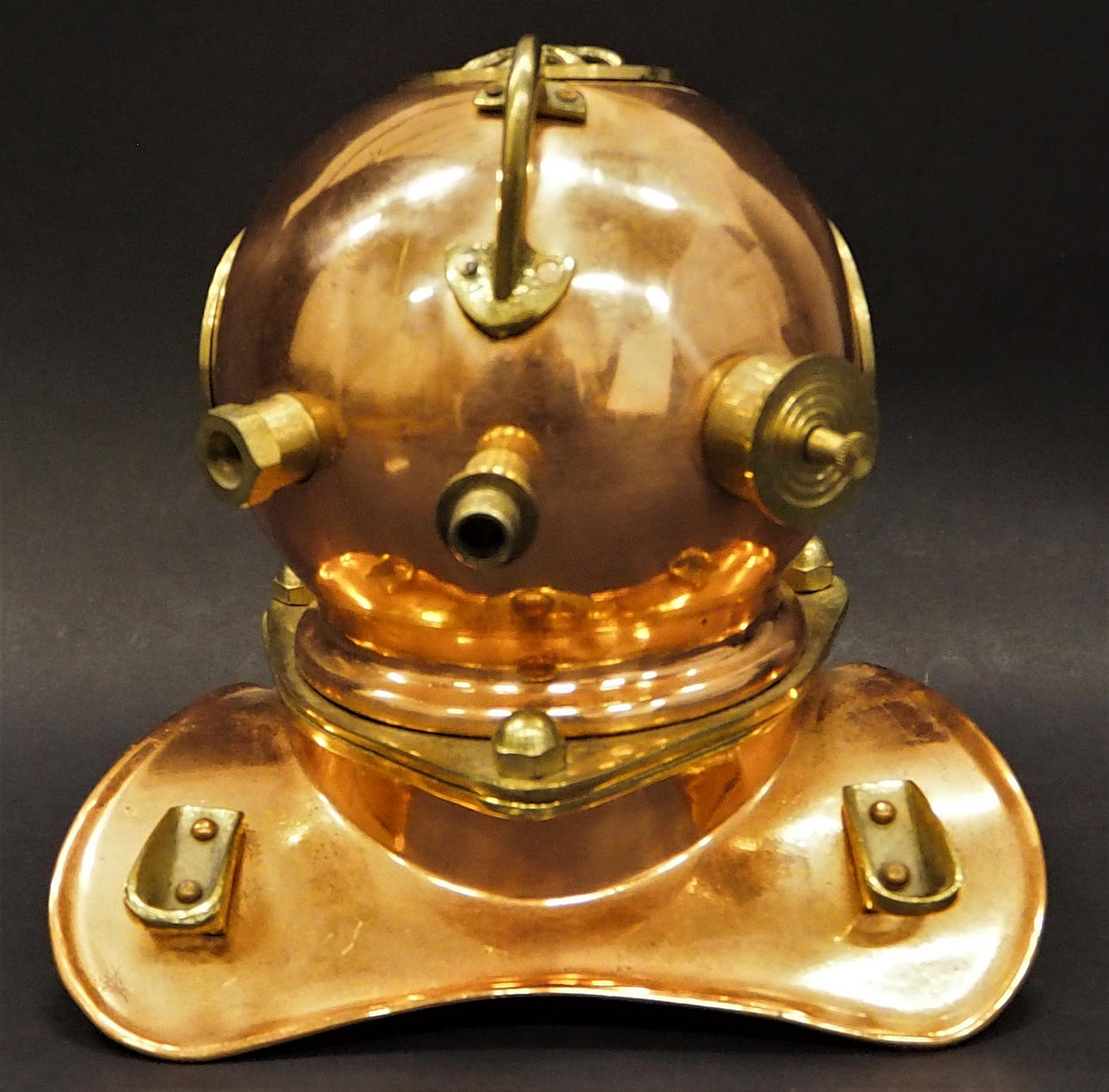 Casco de buceo en miniatura con forma de campana fabricado en cobre y latón. Altura 19cm.