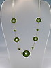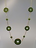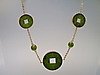 Está engastado con discos planos y bolas de jade verde bosque con un acabado finamente pulido.