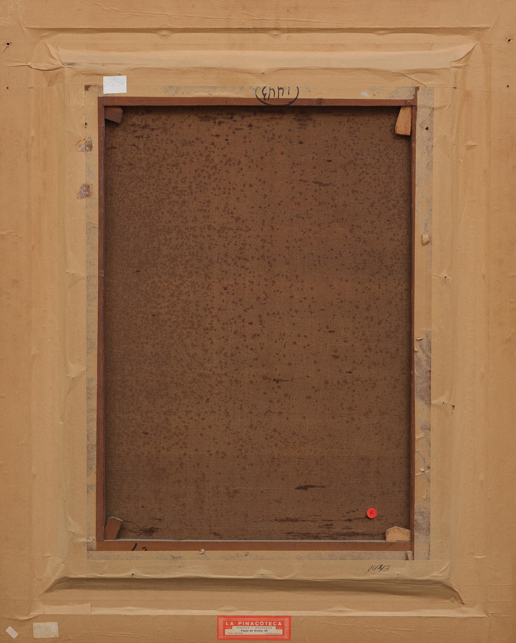 Reentelado. Con marco en madera moldurada y dorada.
