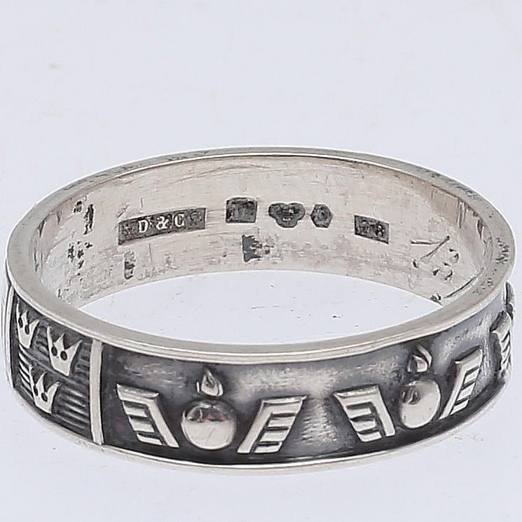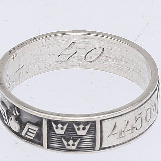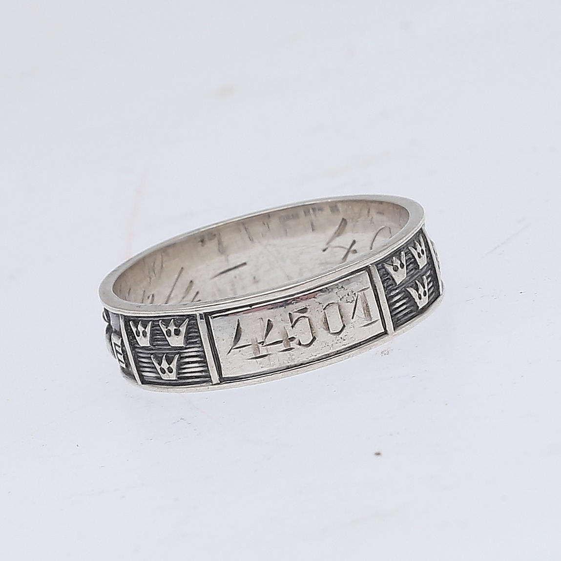 Anillo con tres coronas y probablemente emblema de la fuerza aérea.