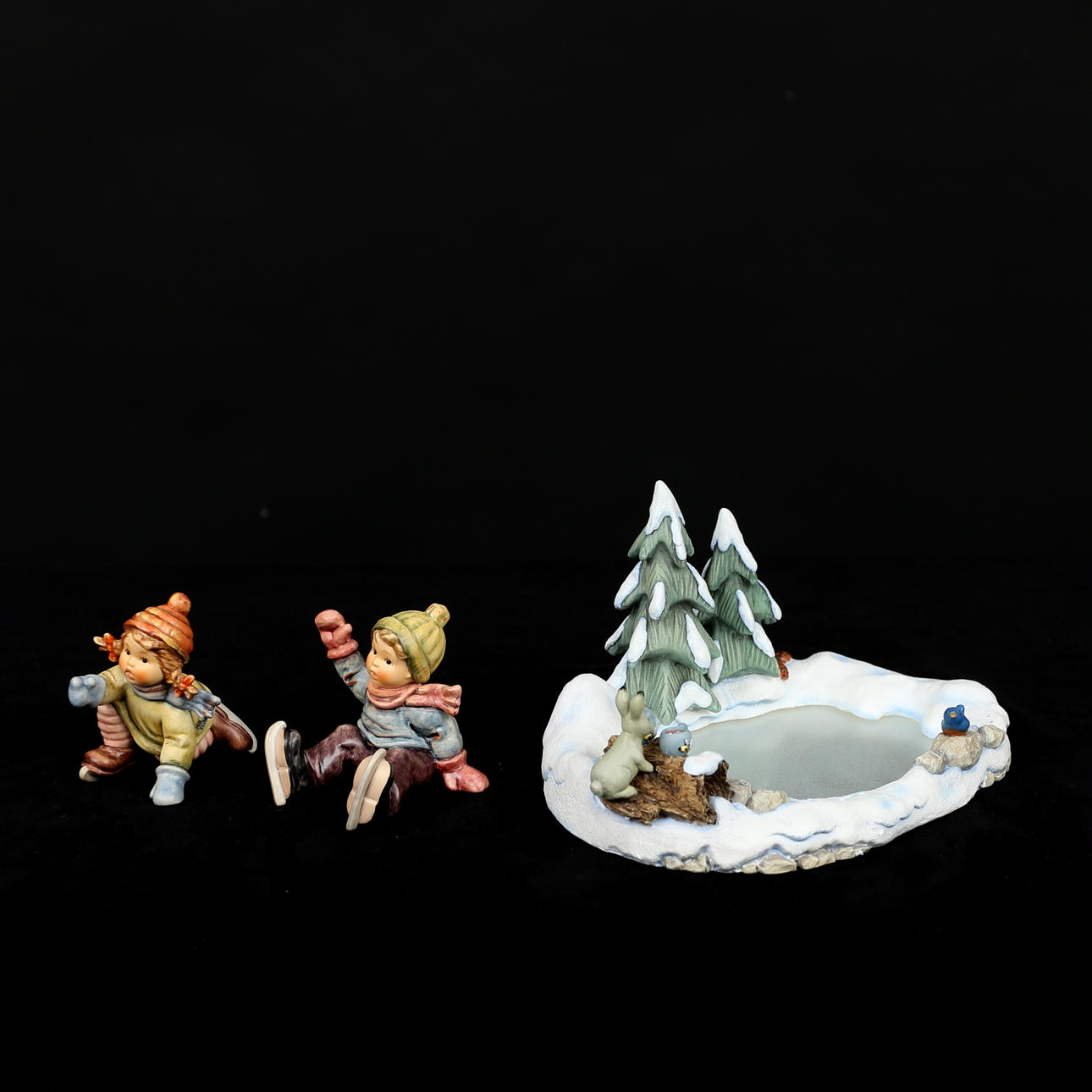 Lago helado "Winteradventure" con niños patinando, longitud aproximada de 22 cm, comedero para pájaros y niño con globo, altura de la figura aproximada de 8-14 cm.