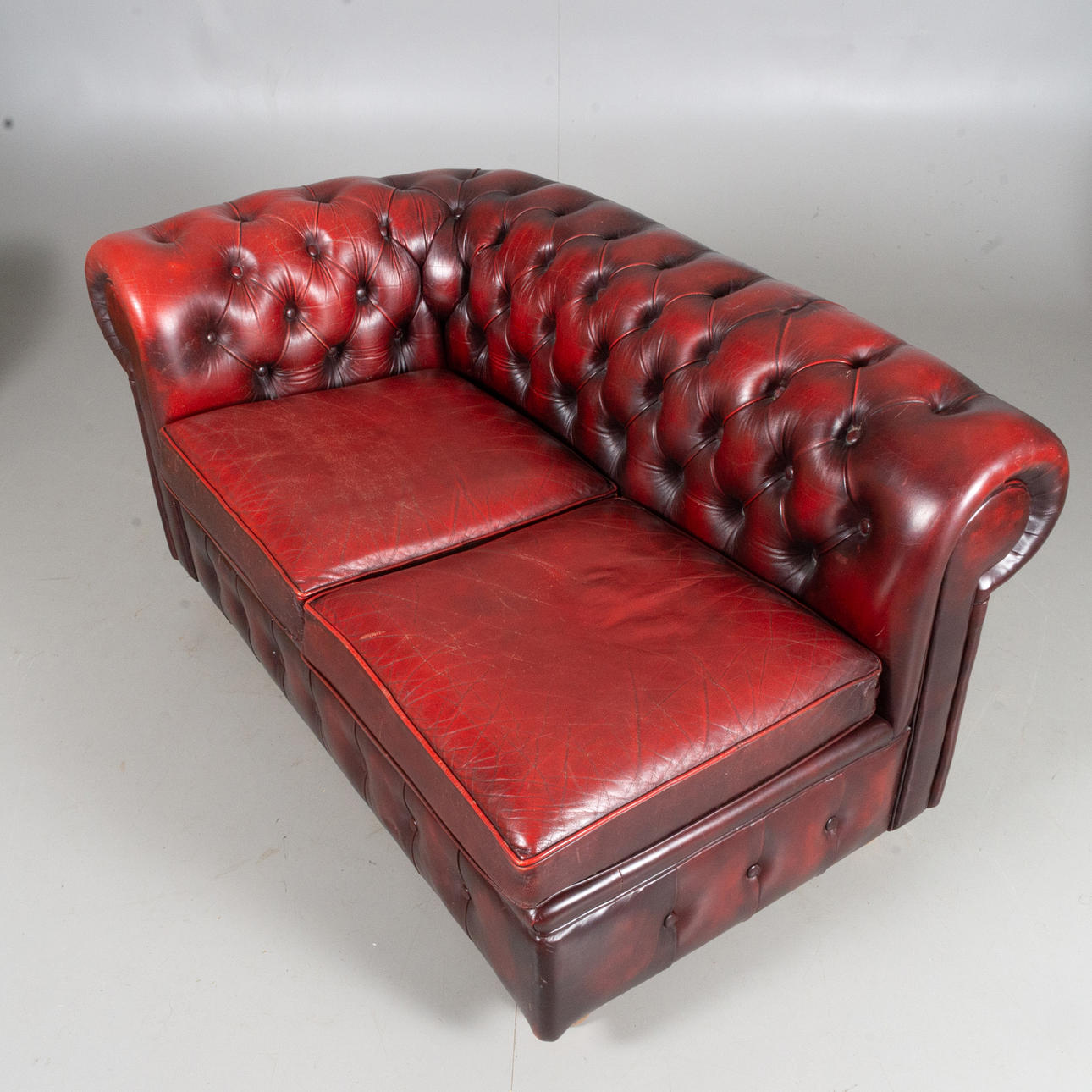 1274491. SILLÓN SOFÁ, modelo chesterfield, piel roja.