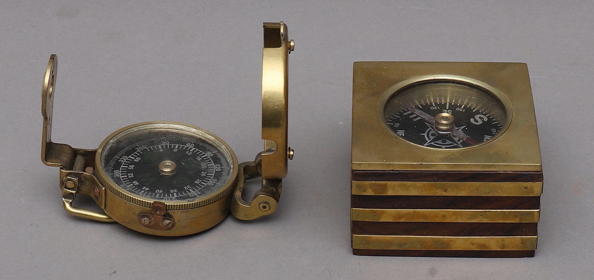 1296369. COMPASES, 2 piezas, latón/madera.