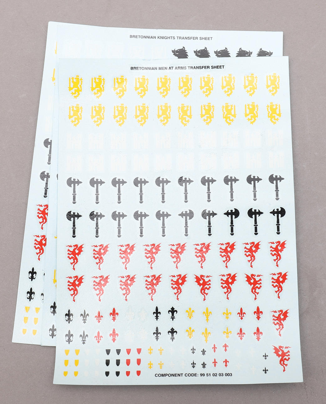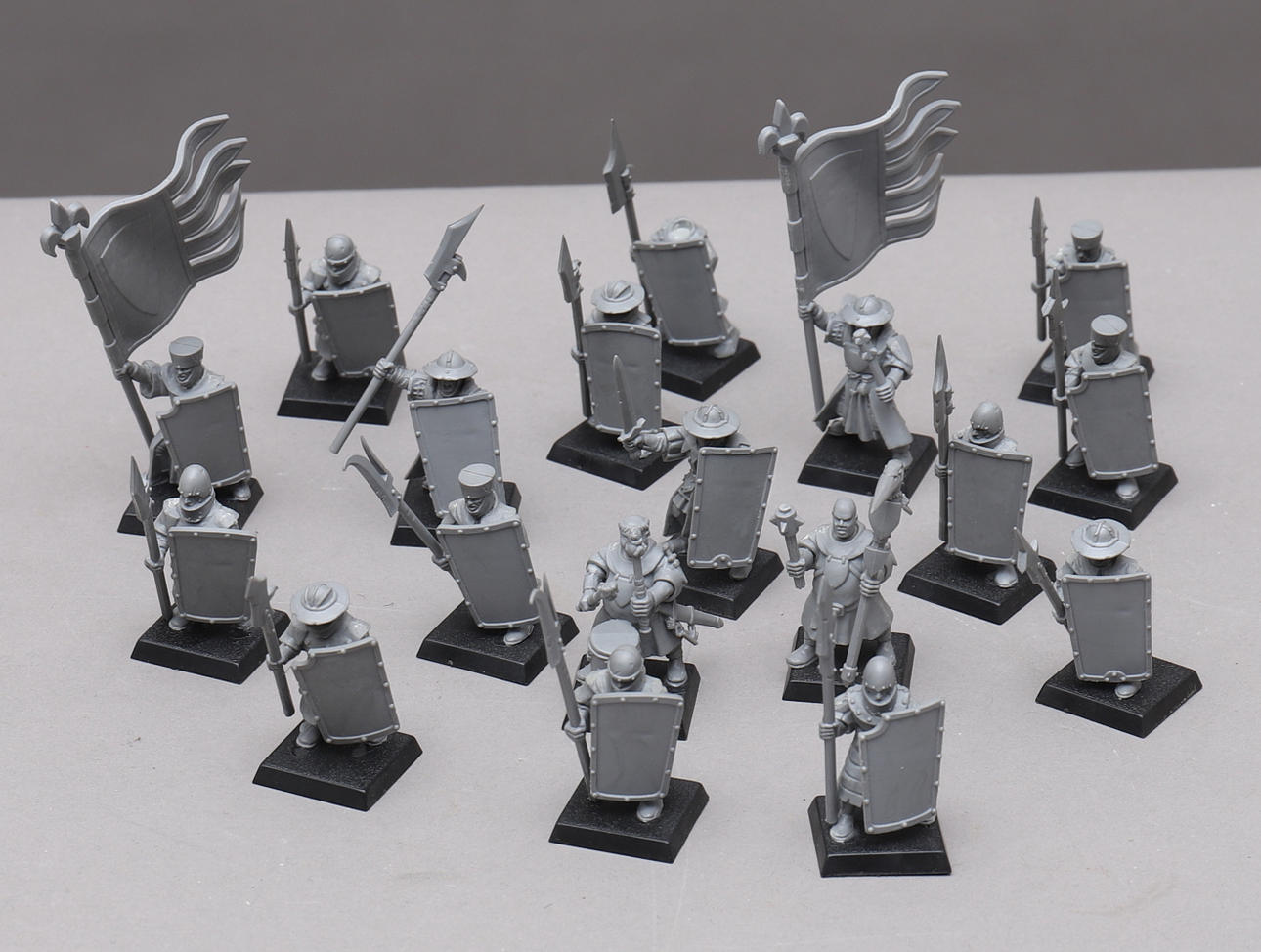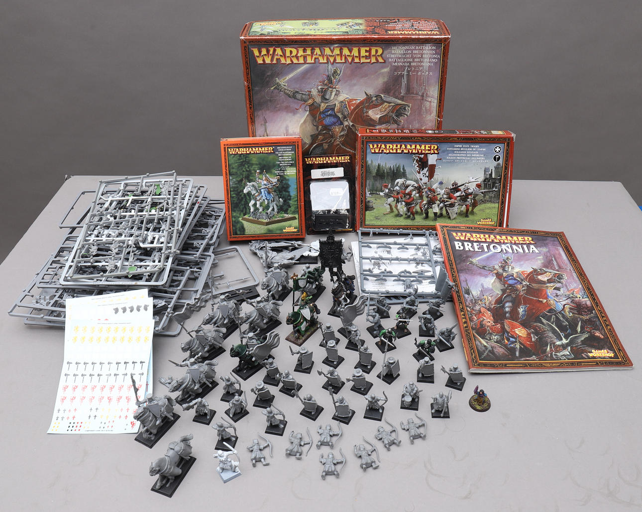 Sin pintar y algún que otro en el sobre de la mesa, algunos no están completamente ensamblados. algunas partes sueltas, algunas partes faltantes. El batallón bretoniano carece de manual de instrucciones.