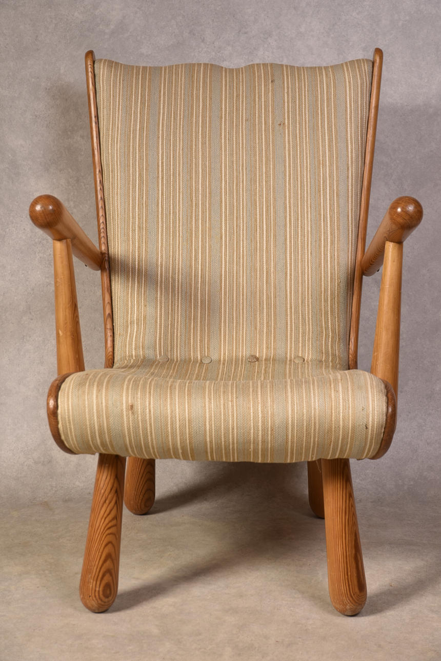Sillón años 40-50 patas cónicas, pino.