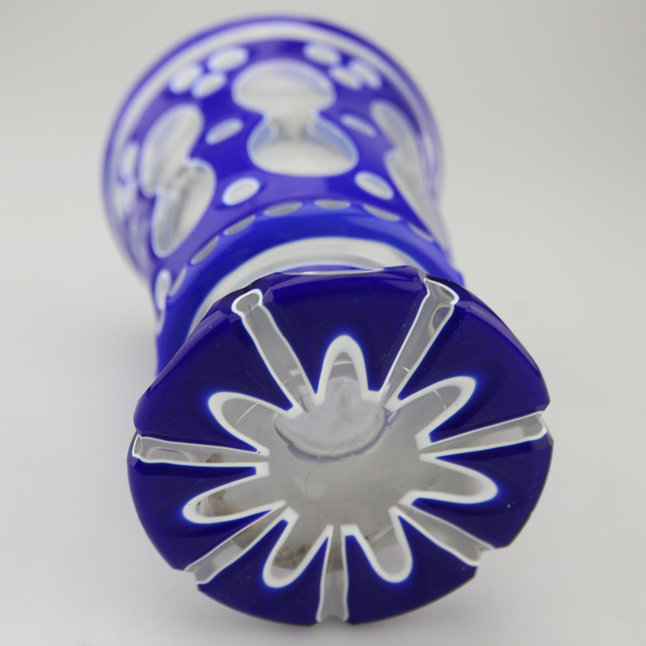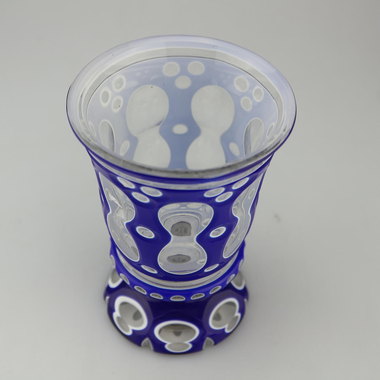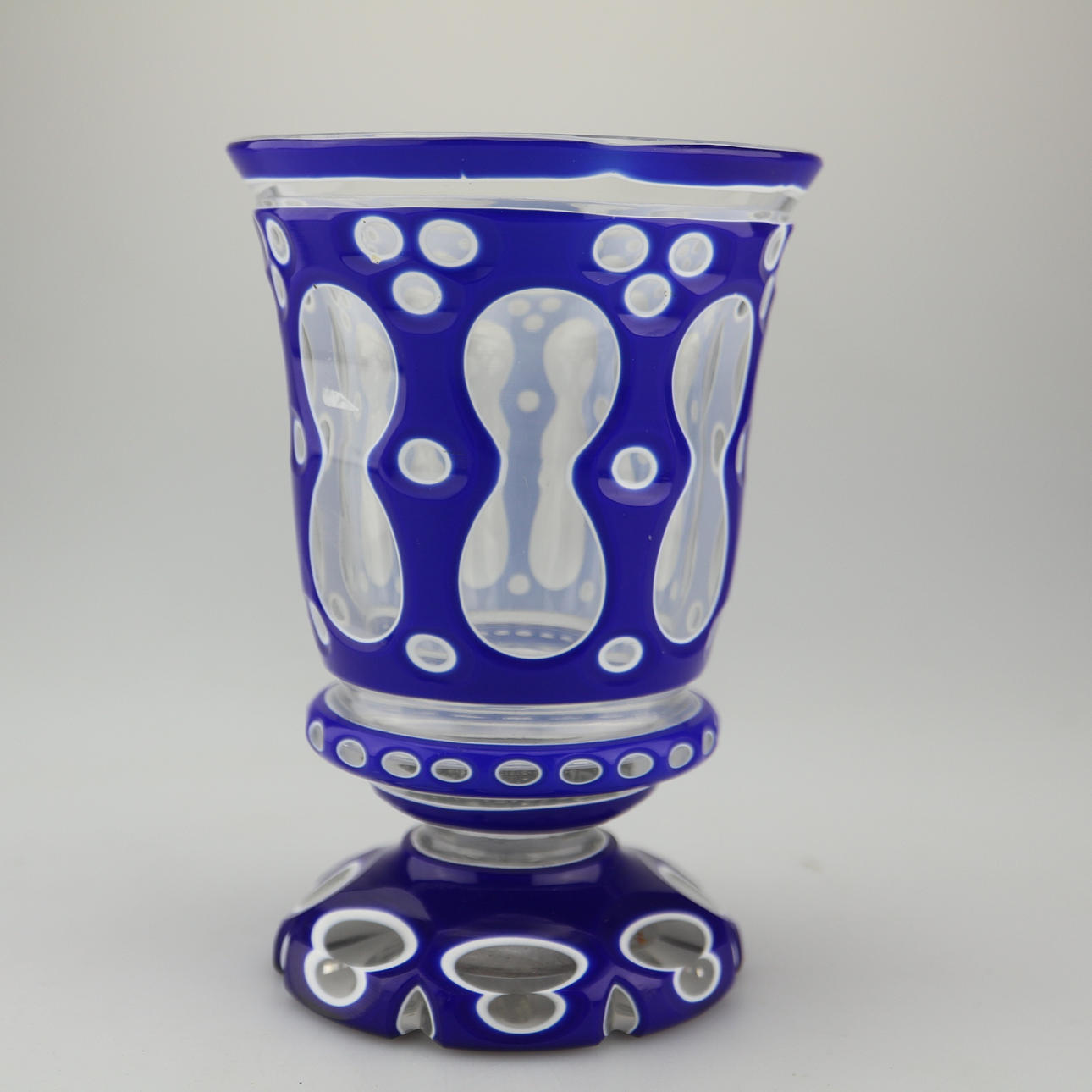 Bohemia de cristal en caja, doble caja azul con blanco, alrededor de 1820, tallada a mano, soplada a mano, altura: 13 cm.