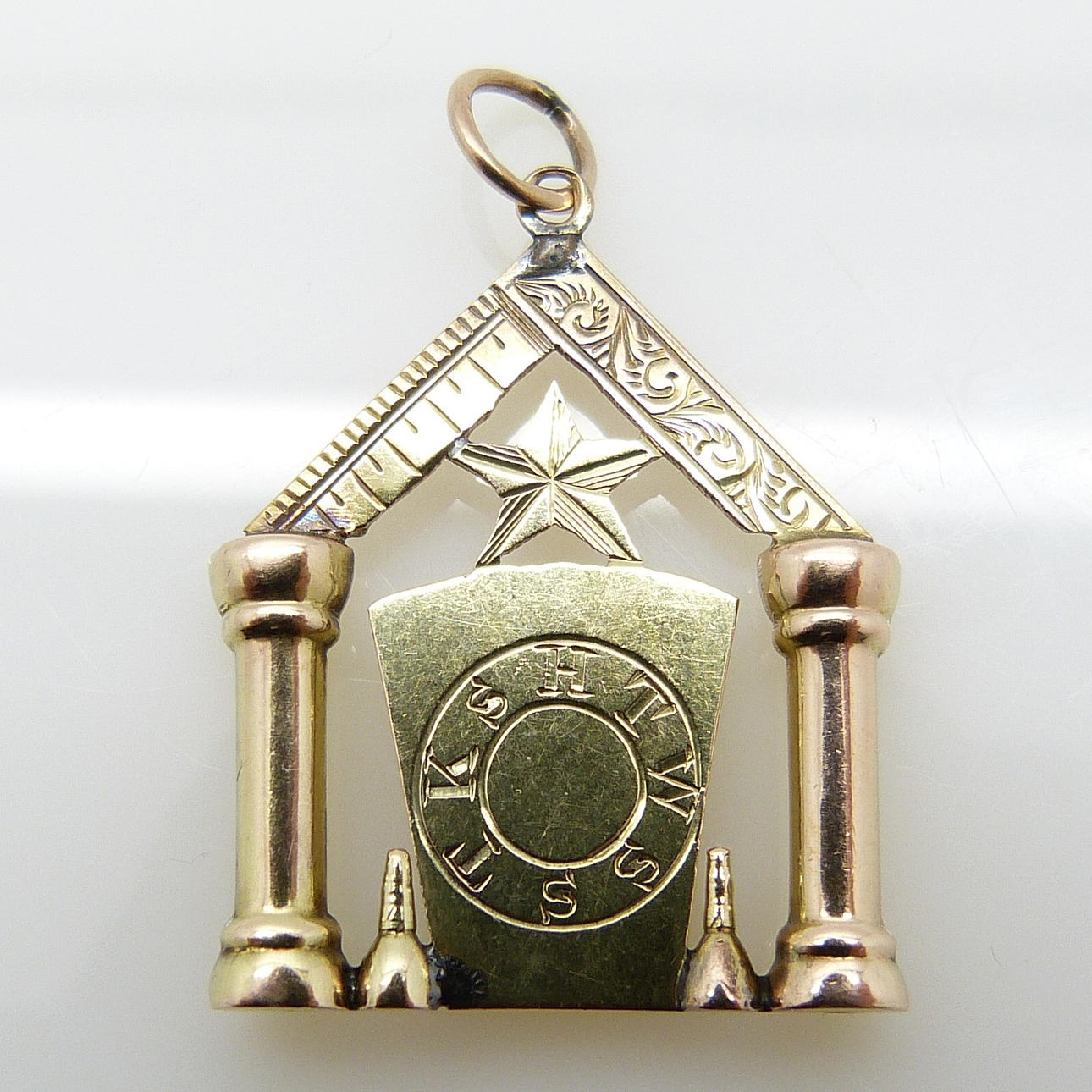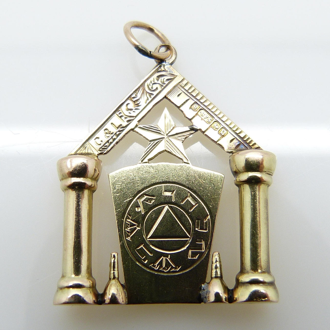 Este colgante tiene inscripciones y simbolismo masónico en ambos lados.