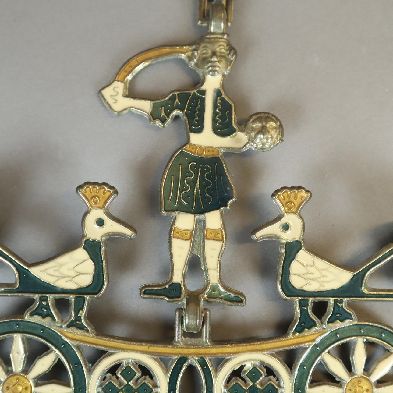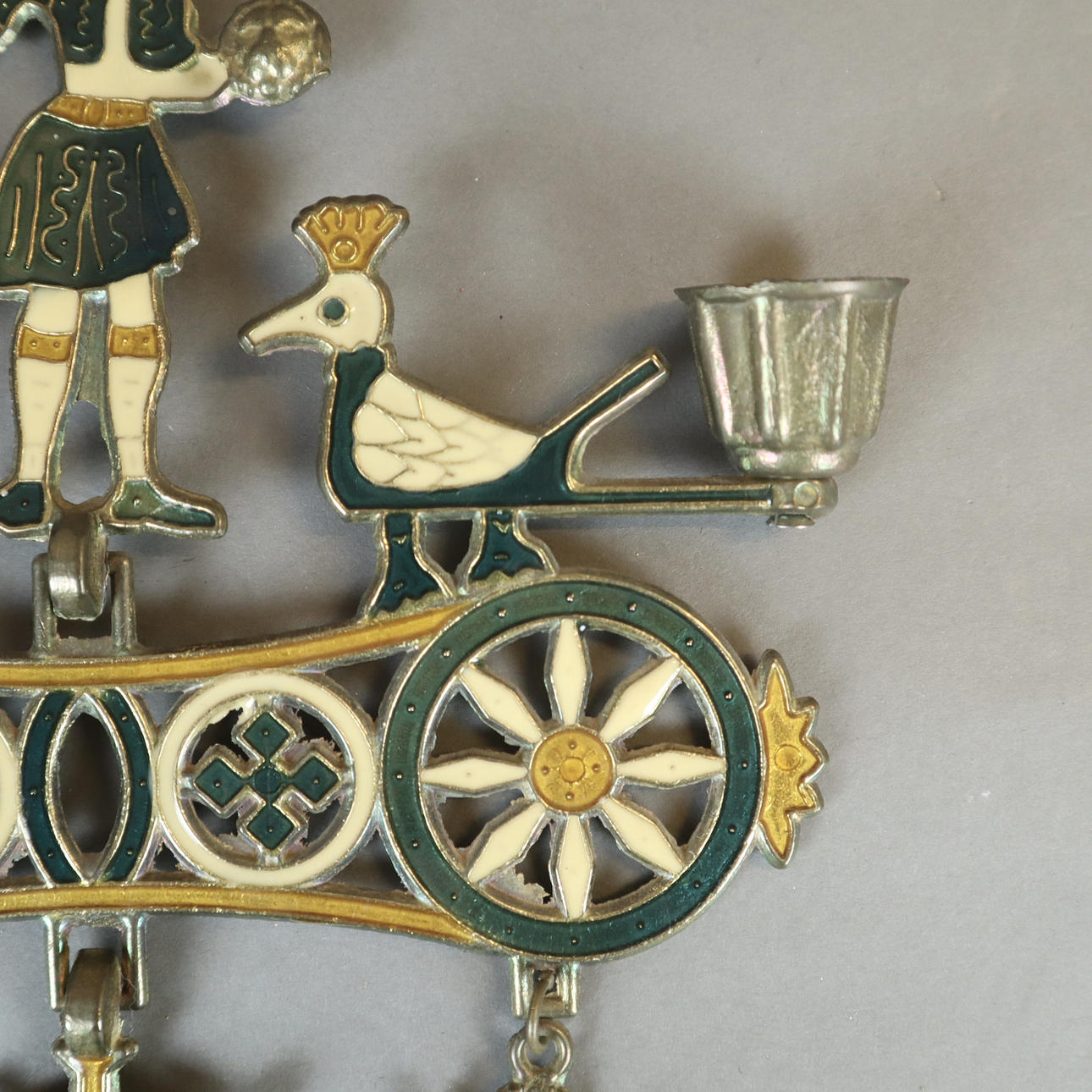 Calado, decoración de esmalte policromado, 2 boquillas para velas, reverso marcado "EX", para colgar, L x An: 42,5x21,5 cm aprox.