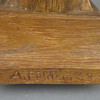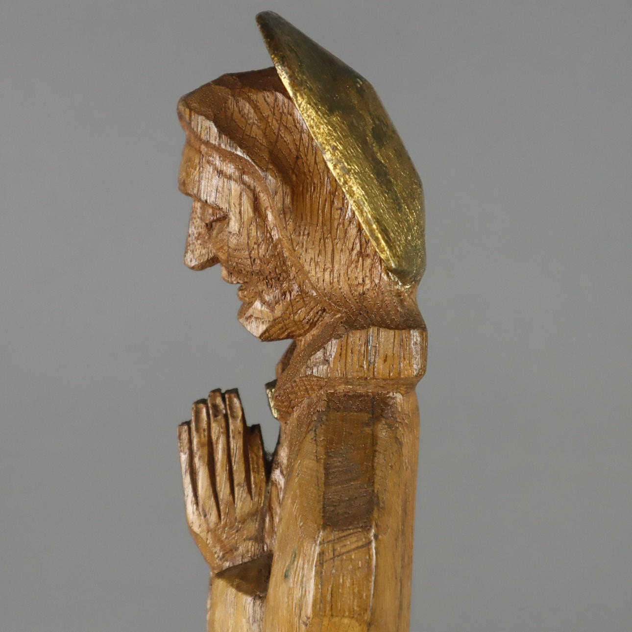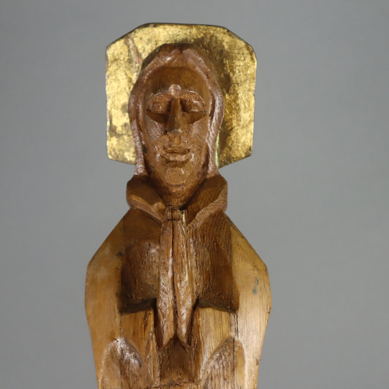 tallada y unida, aureola dorada, base marcada en el reverso. "A. Felden 68", Alt. aprox. 57 cm.