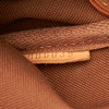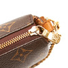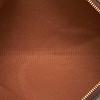 Lona con motivo de monograma. Mango y decoración de cuero. Cierra con cremallera. Bandolera extraíble de metal amarillo y otra de piel. La altura de la bolsa sin asa aproximadamente 11 cm. Ancho aproximado 24 cm. Profundidad aproximada de 4 cm. Número de serie: DU0039.