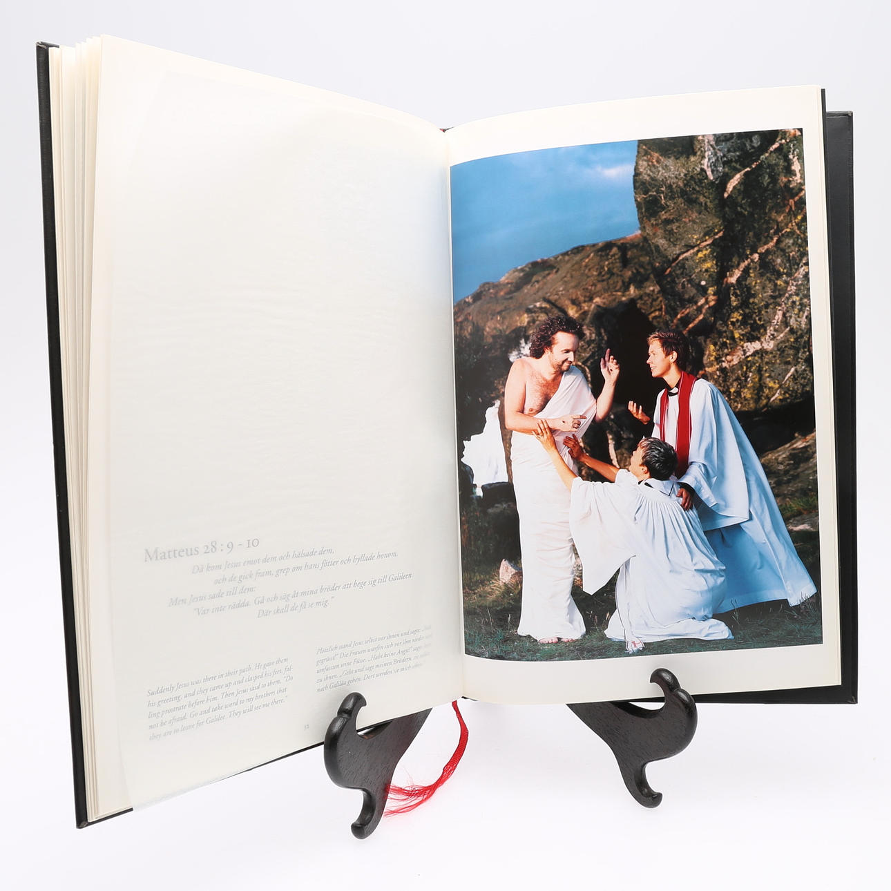 Ohlson, Elisabeth, fotógrafa y artista sueca. Ecce Homo. Fotografías de Elisabeth Ohlson 1996-1998. Publicado por la asociación Ecce Homo, 1998. Folio encuadernado en cuero artificial negro con título y nombre del fotógrafo en dorado en la portada. Con texto introductorio de Jonas Gardell en sueco e inglés. Doce fotografías a color de escenas bíblicas con papel protector. Cada imagen con una cita bíblica. Número 250 de 300 ejemplares. Primera edición.