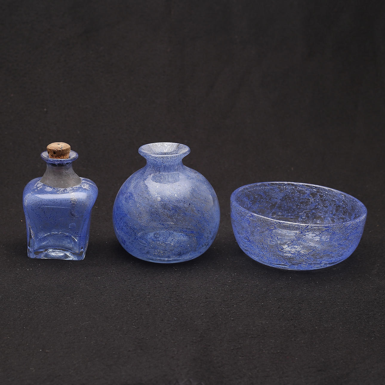 1357134. SERVIDOR, JARRON, CUENCO, BOTELLA, 5 partes, vidrio.