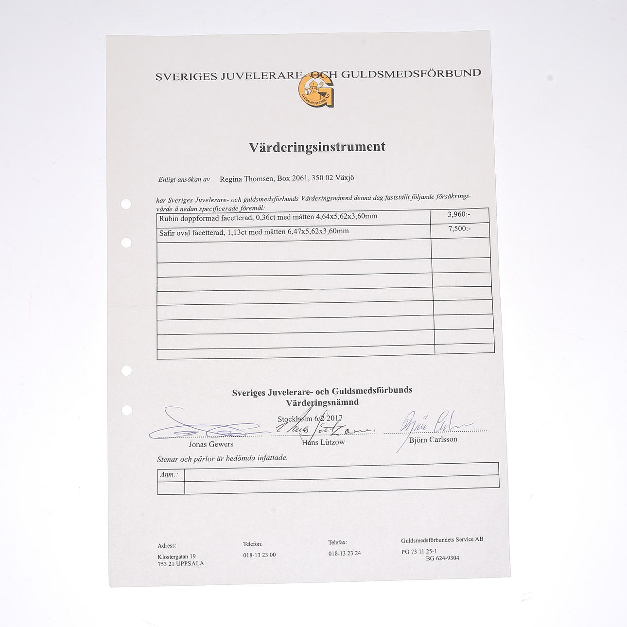 Certificado de tasación incluido.