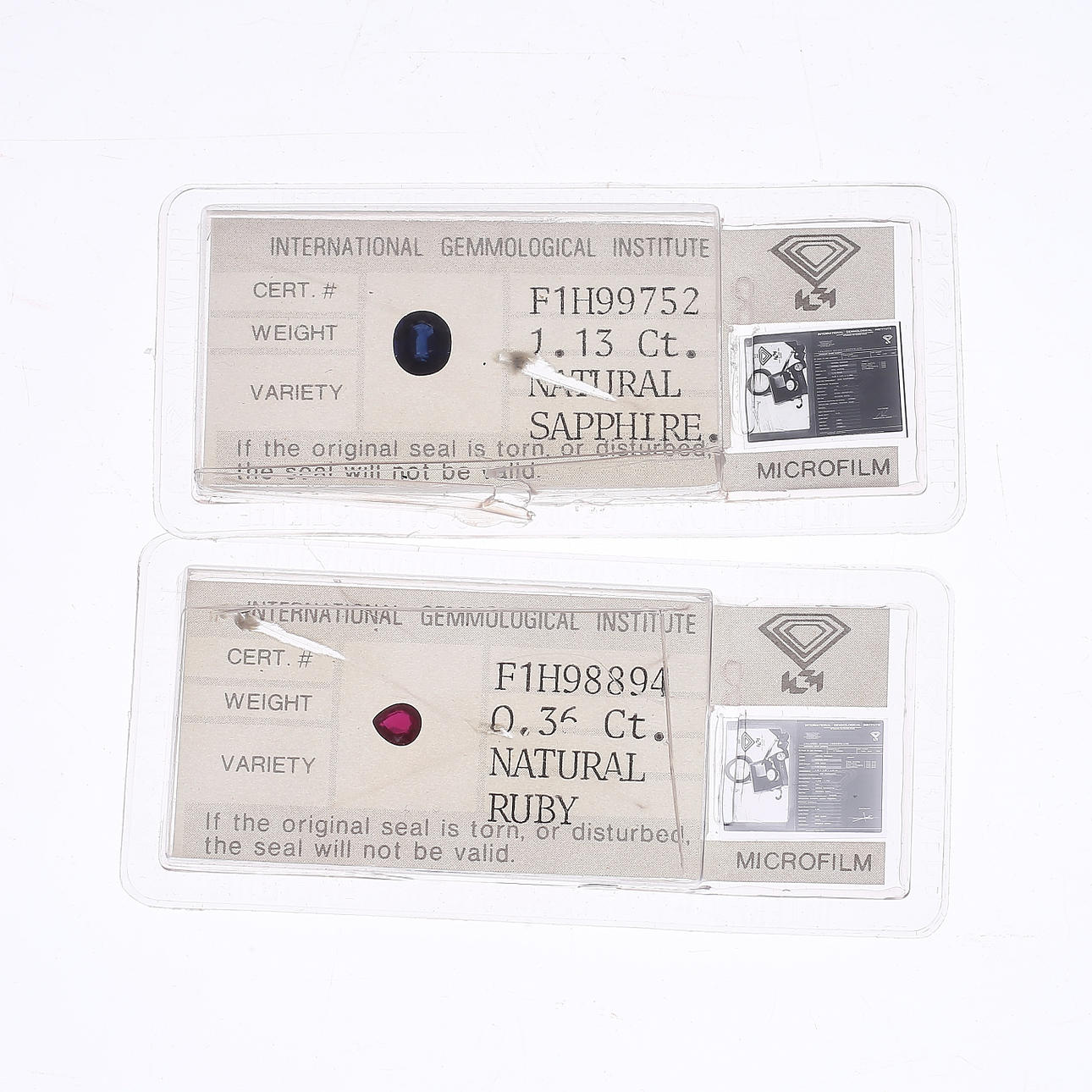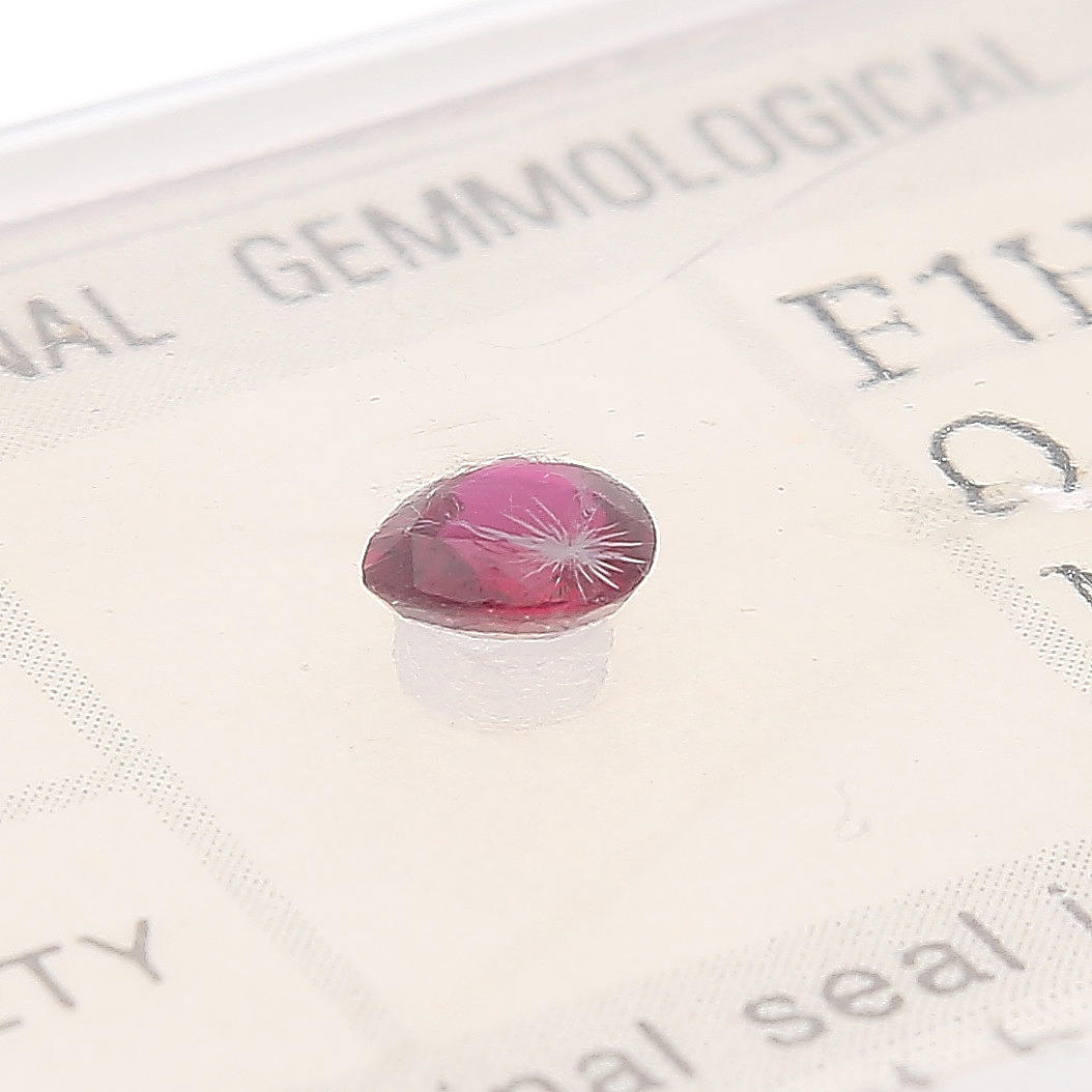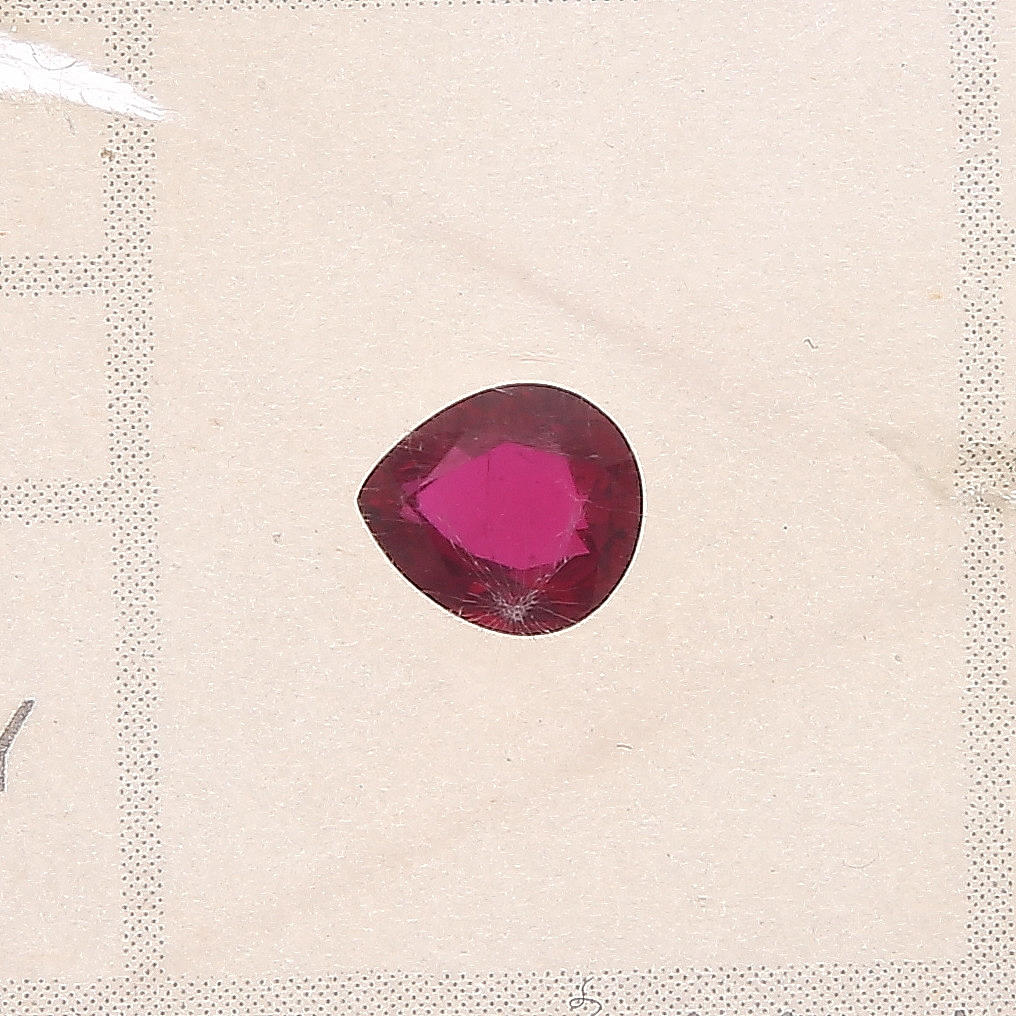 Rubí, en forma de gota, facetado, 0,36 ct. Zafiro, ovalado, facetado, 1,13 ct.