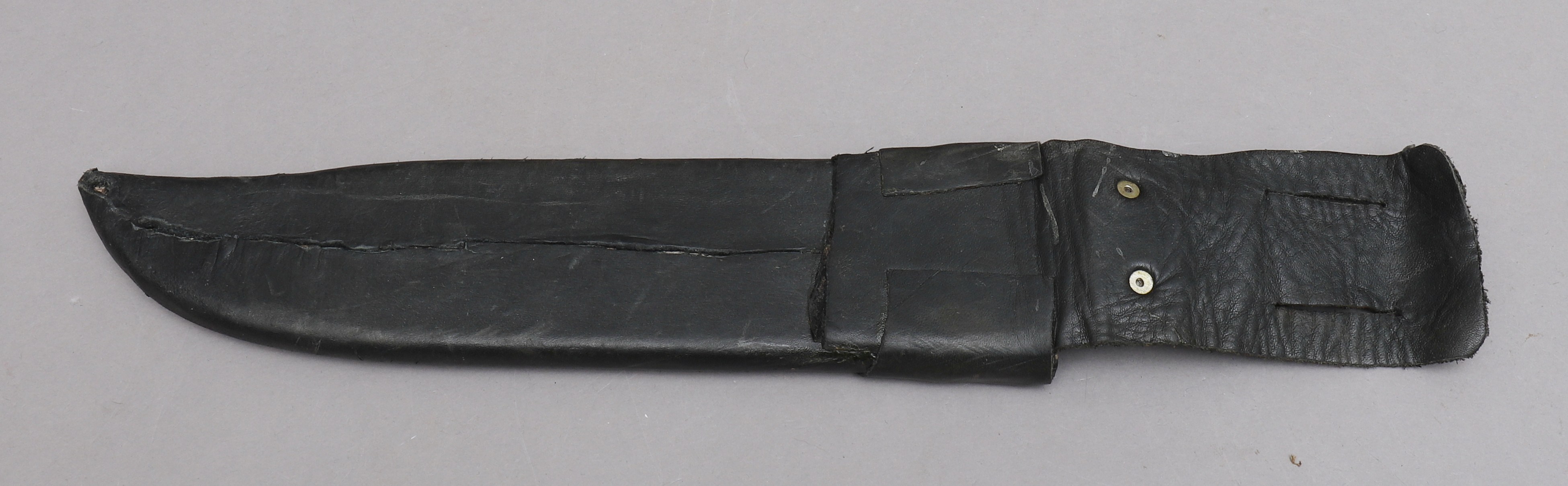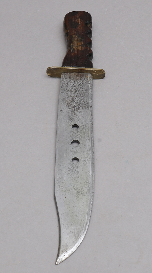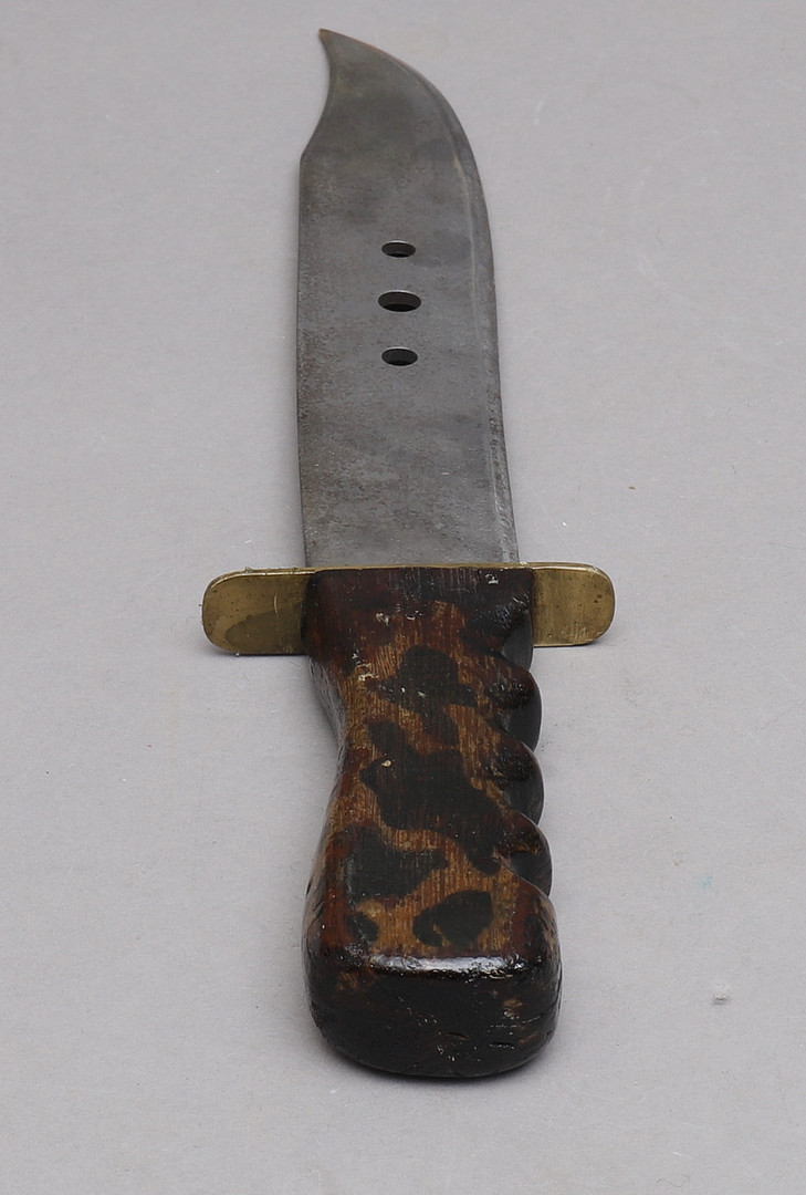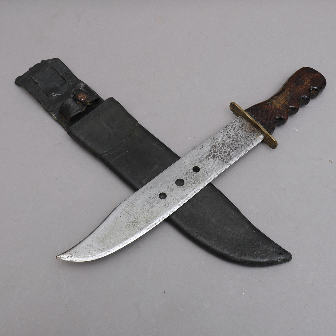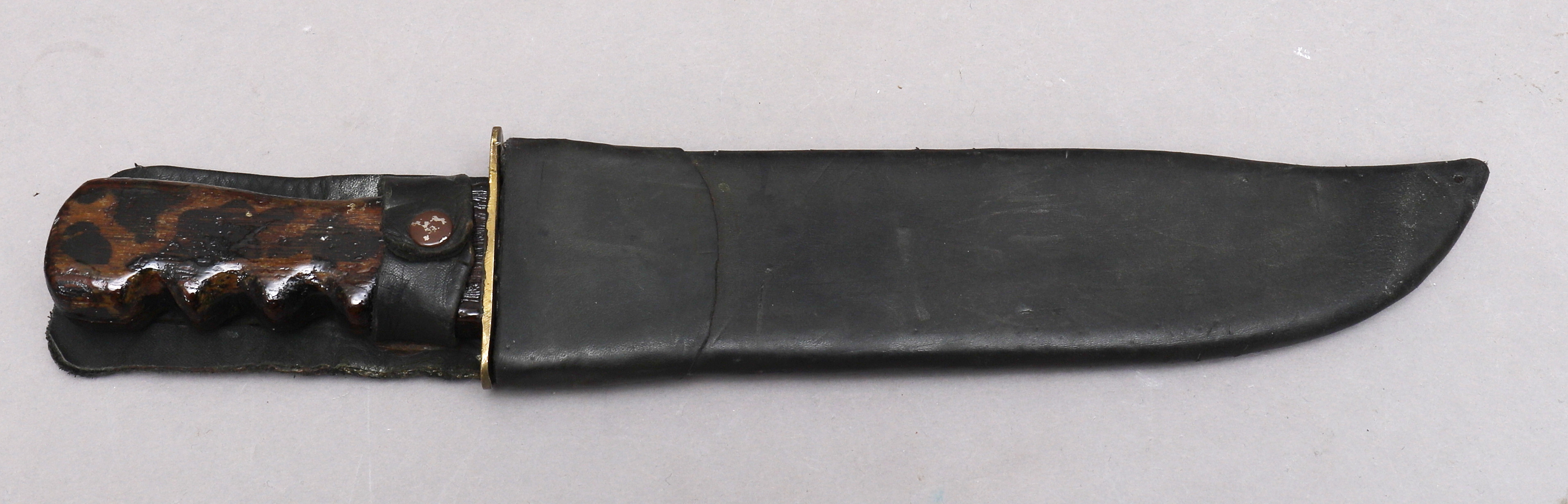 1369721. MACHETE, mango de madera, funda de cuero.