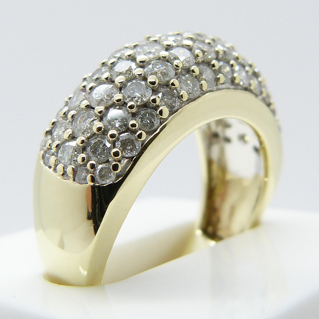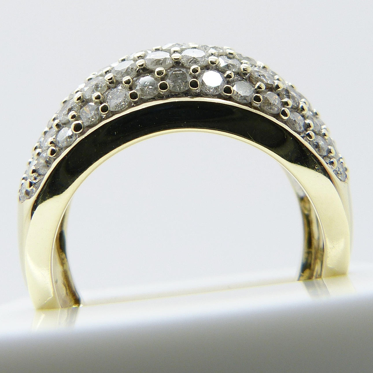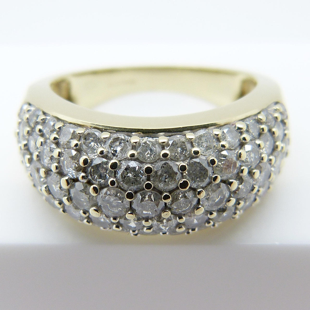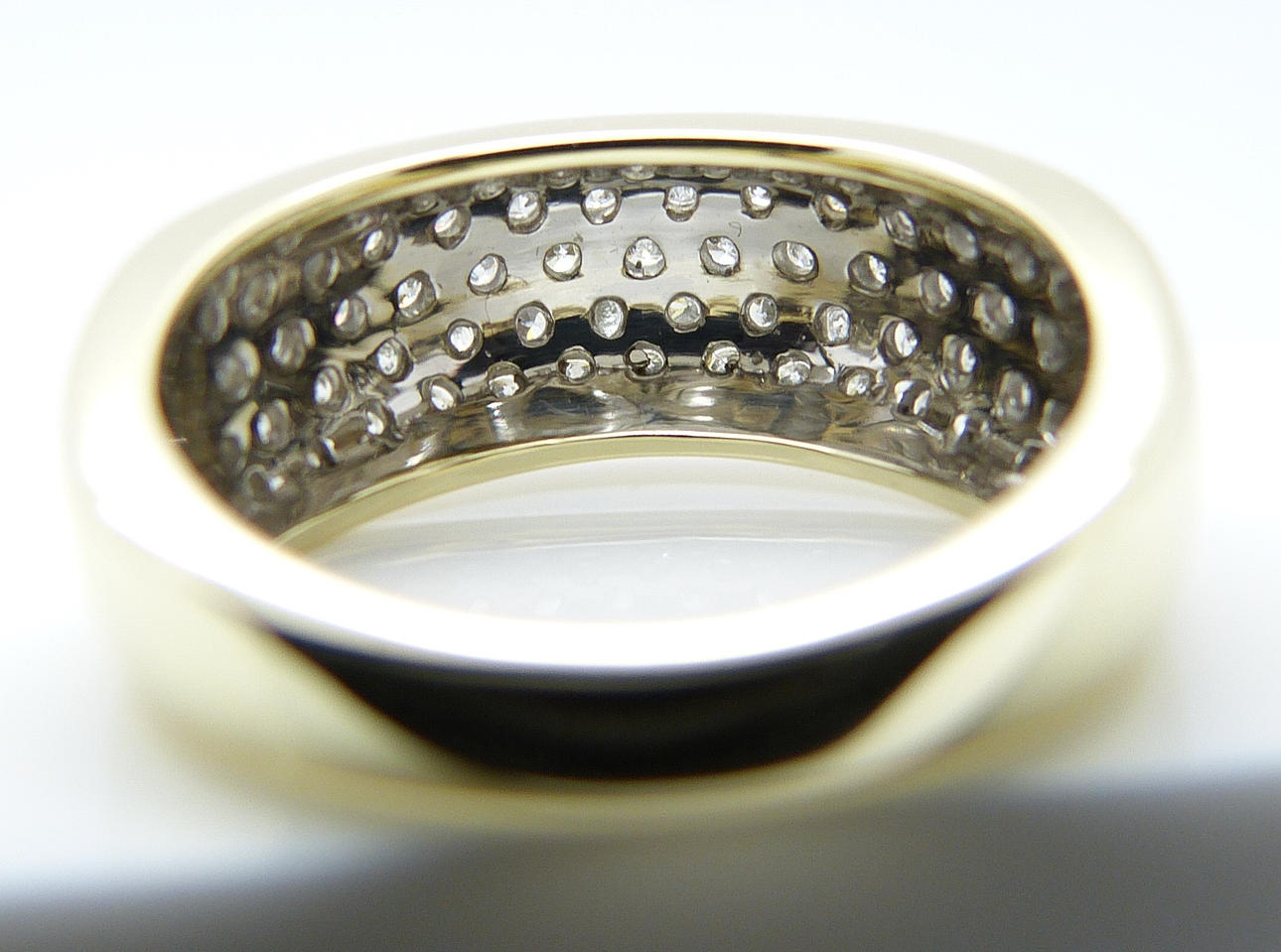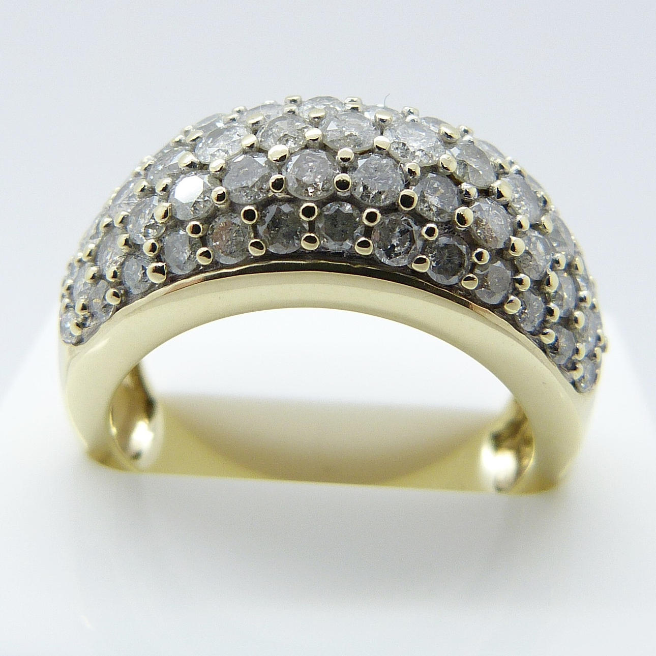 67 diamantes están engastados en pavé en este anillo, en 5 filas.