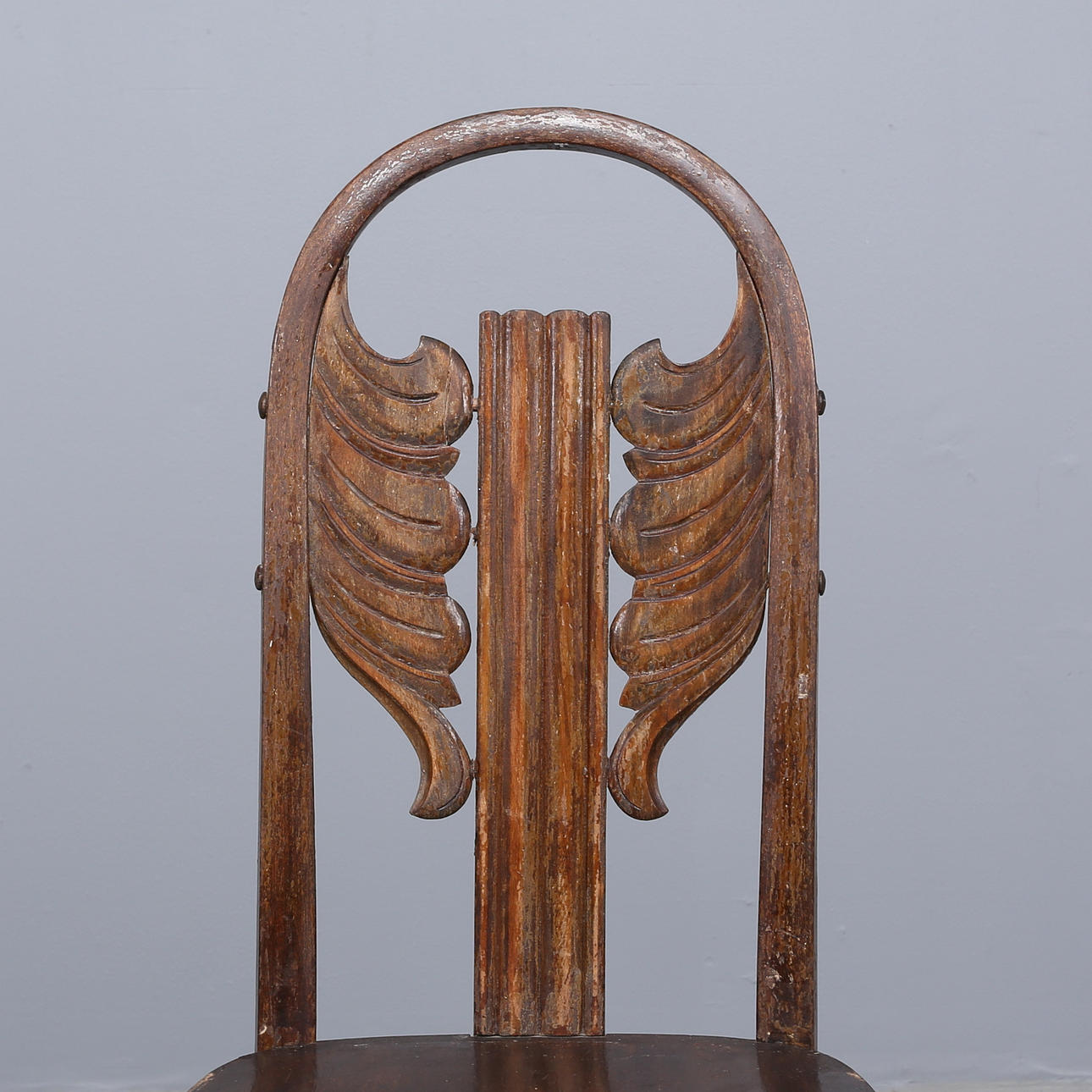 Bandeja trasera redondeada con decoración recortada, patas delanteras con ranuras, altura del asiento aprox. 48 cm.